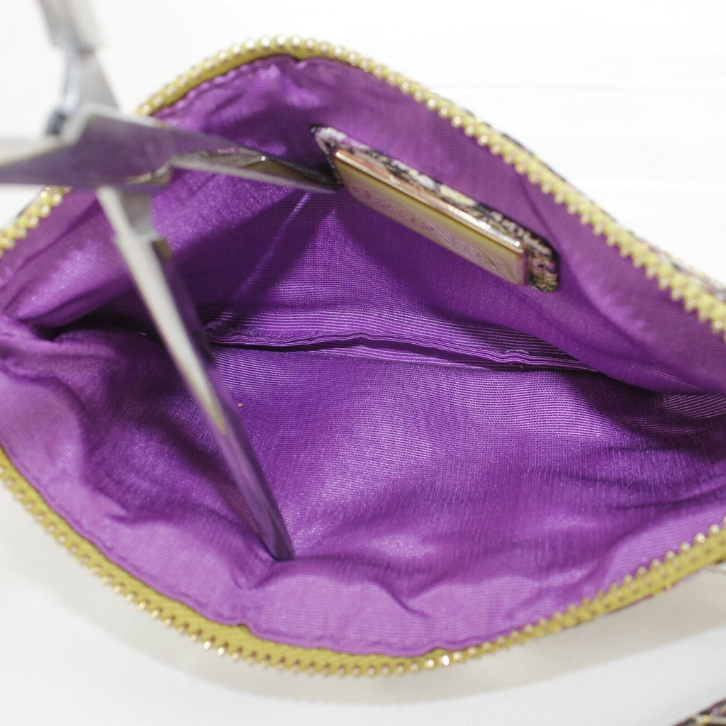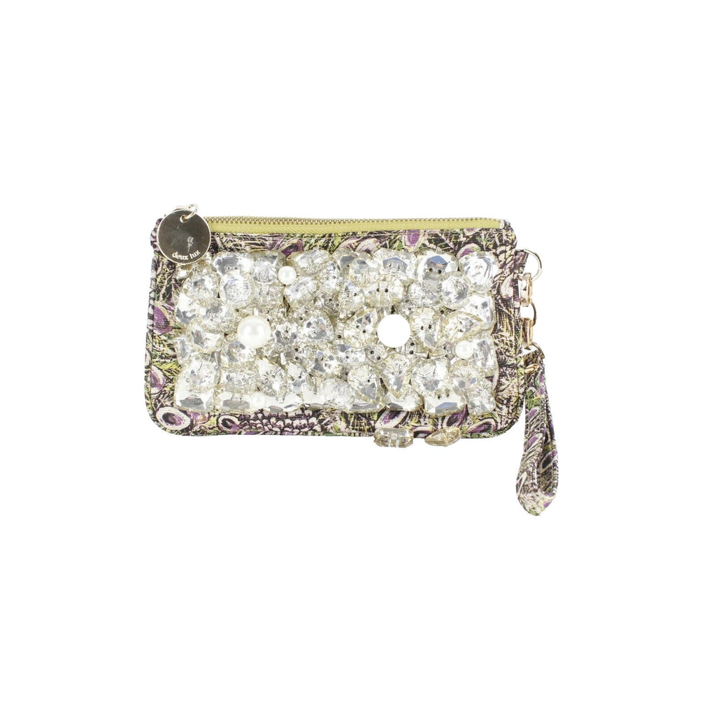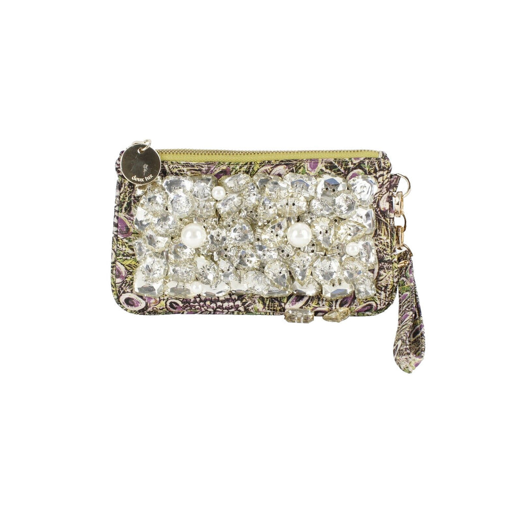 Deux Lux 5 x 8.5 Lime Purple Gold Multi Cluster Stones Pearls Zip Wristlet Purse