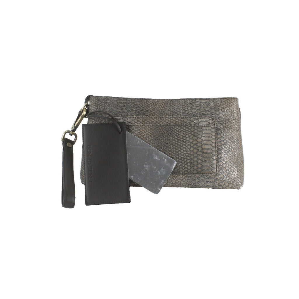 Donald J Pliner 7 x 12 Brown Multi Metallic Snake Leather Zip Top Wristlet Purse