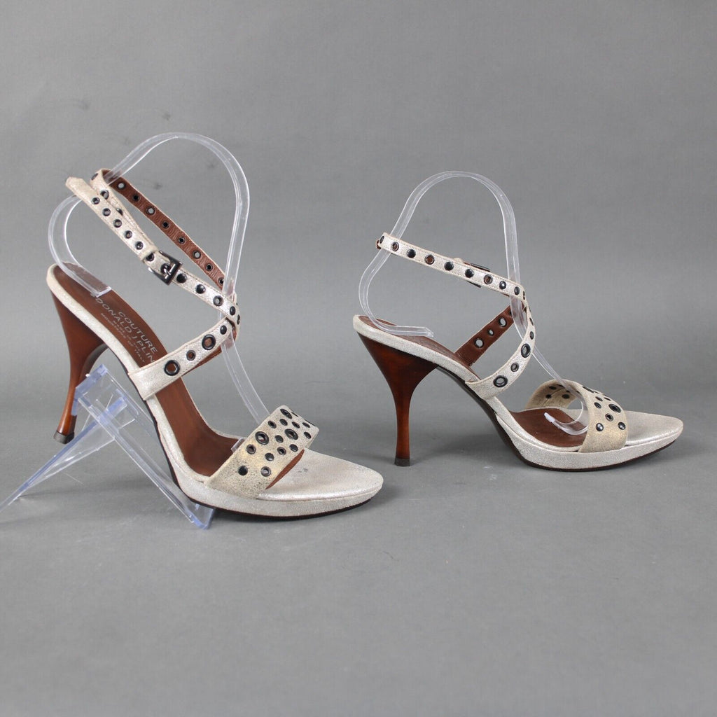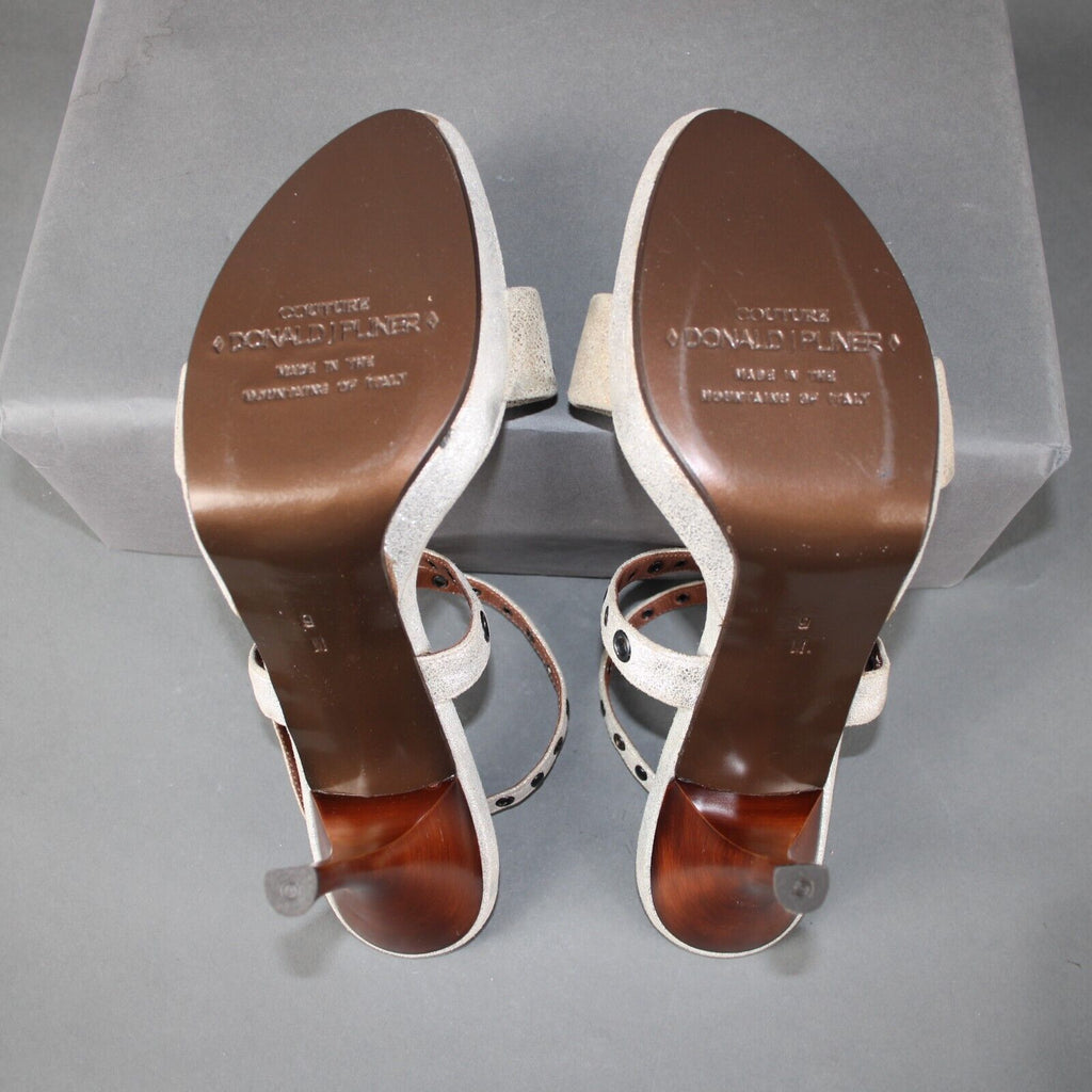 Donald J Pliner Couture NEW Sz 9 M Silver Gold Metallic Strappy Ankle 4" Heels