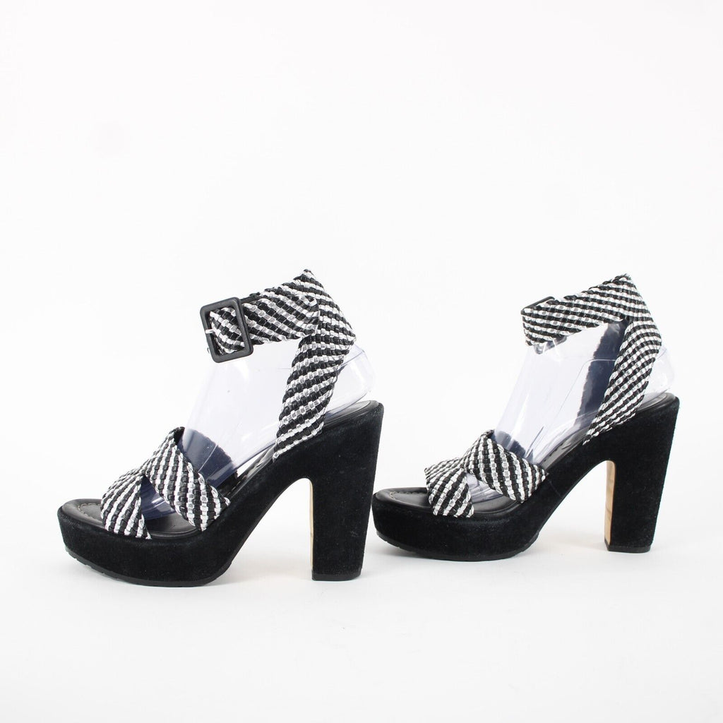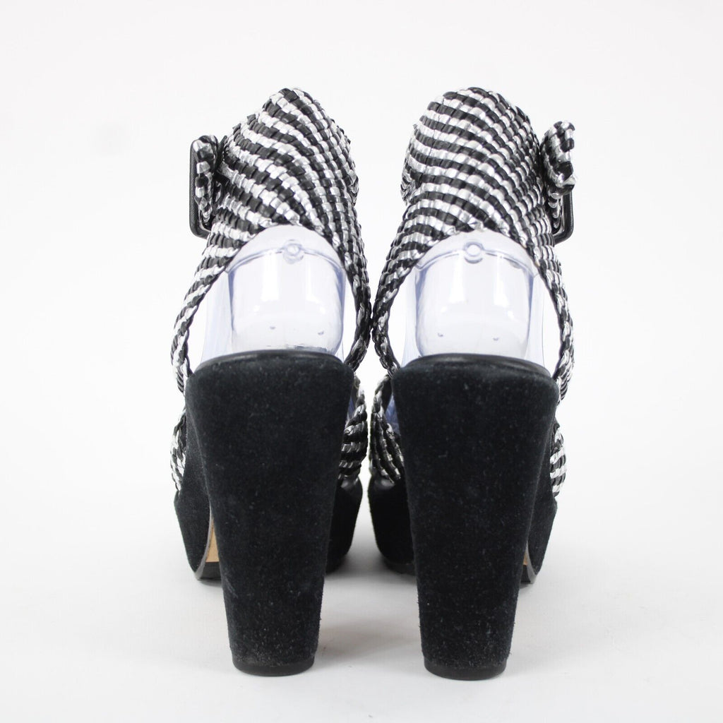 Donald J Pliner Sz 9.5M Black Silver Synthetic Upper Rubber Sole AS IS 4" Heel