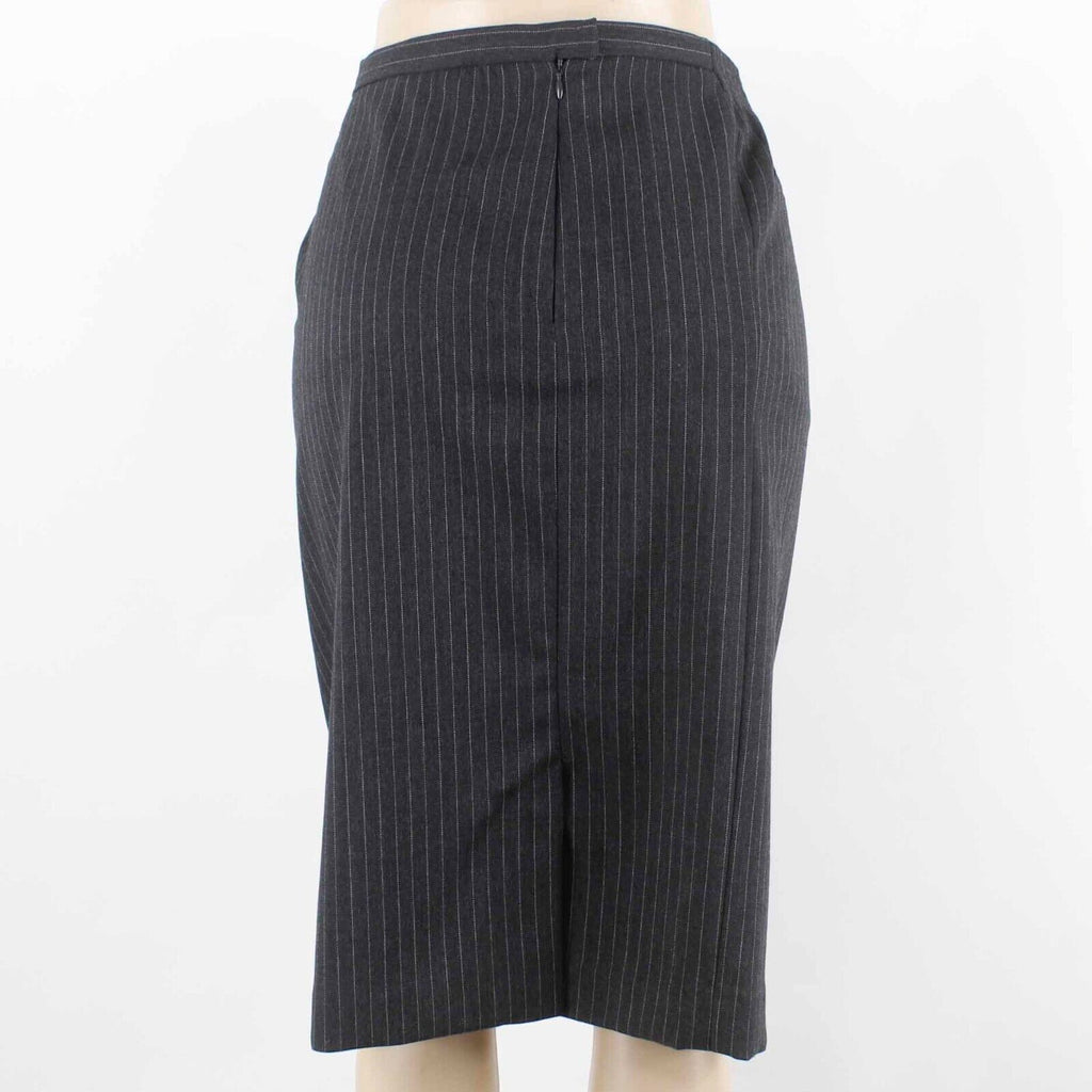 Donatella Sz 10 Charcoal White Pinstripe Kick Pleat Lined Wool Blnd Pencil Skirt