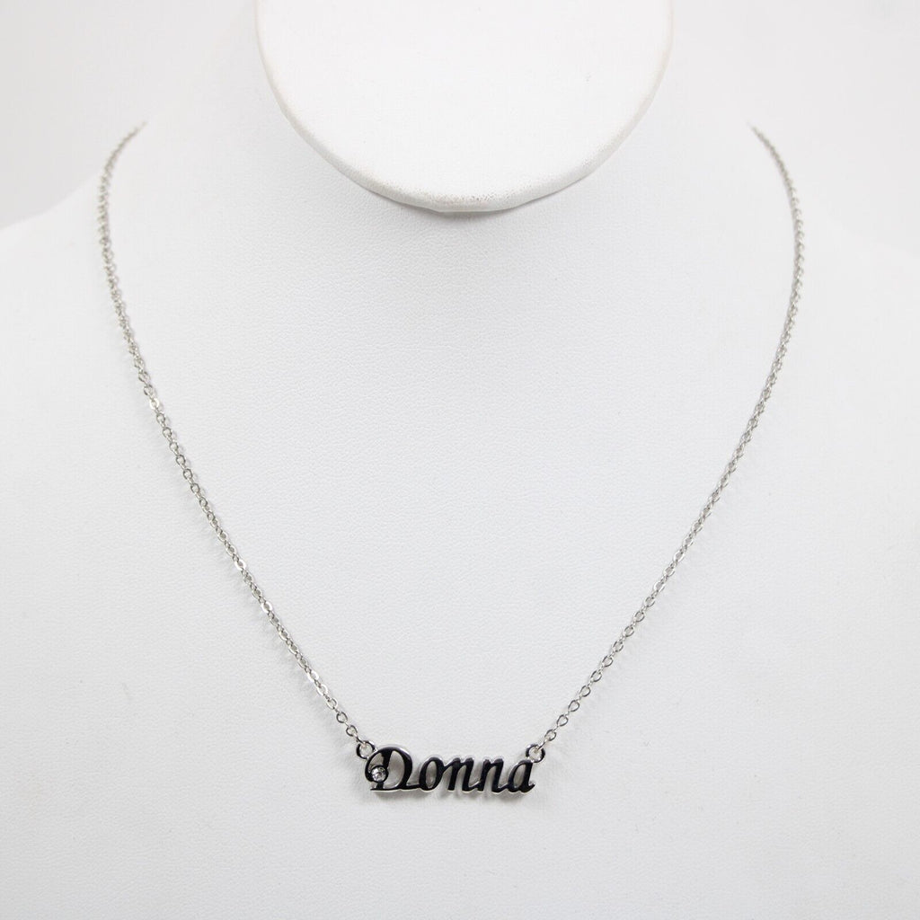 DONNA NEW Name Silvertone Rhinestone 14.5" w 4.5" Multi Ring Ext Necklace