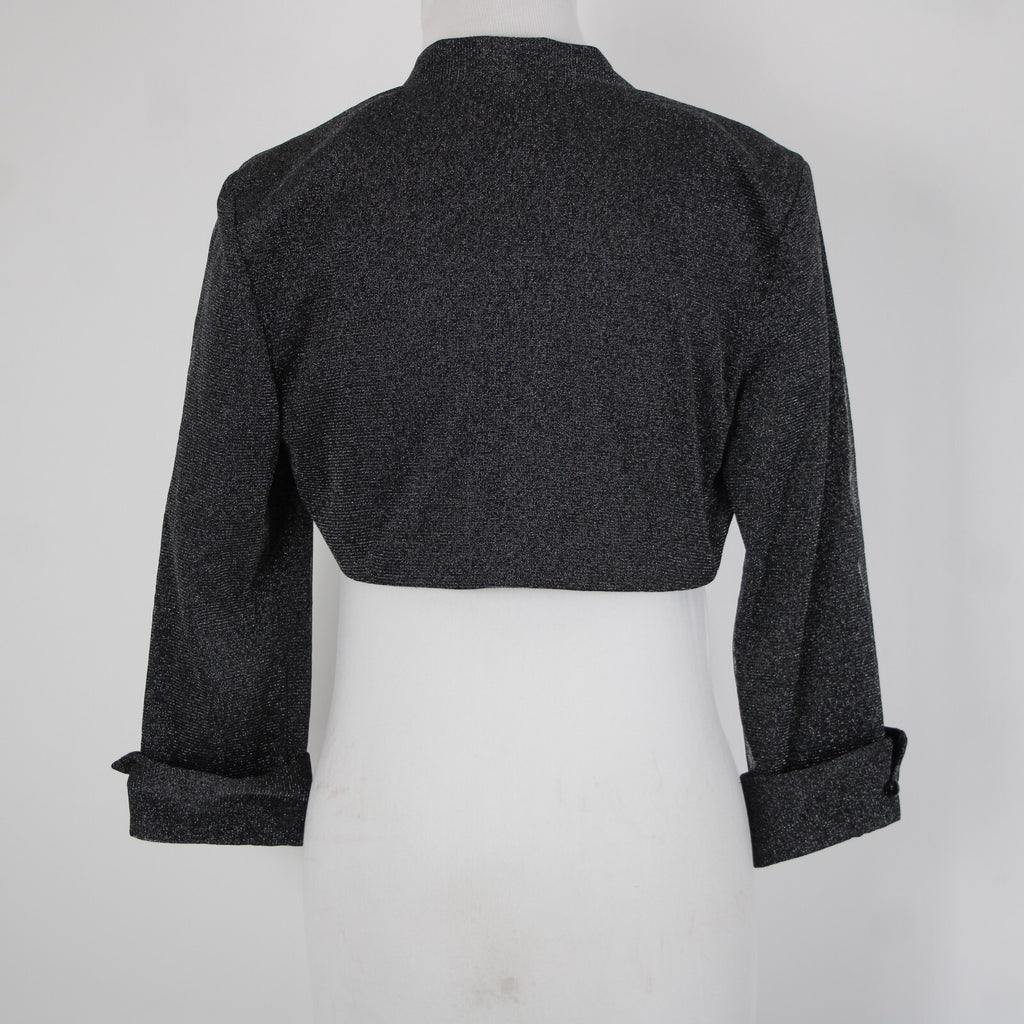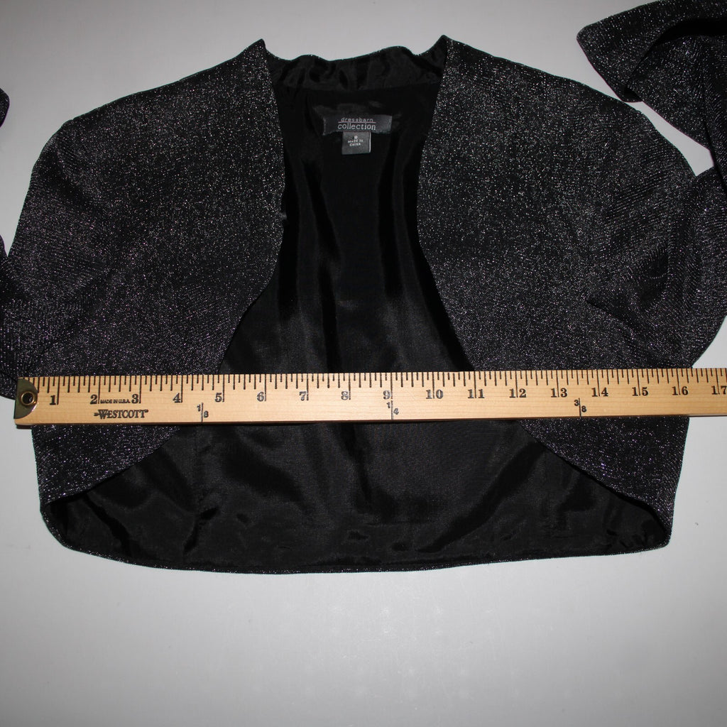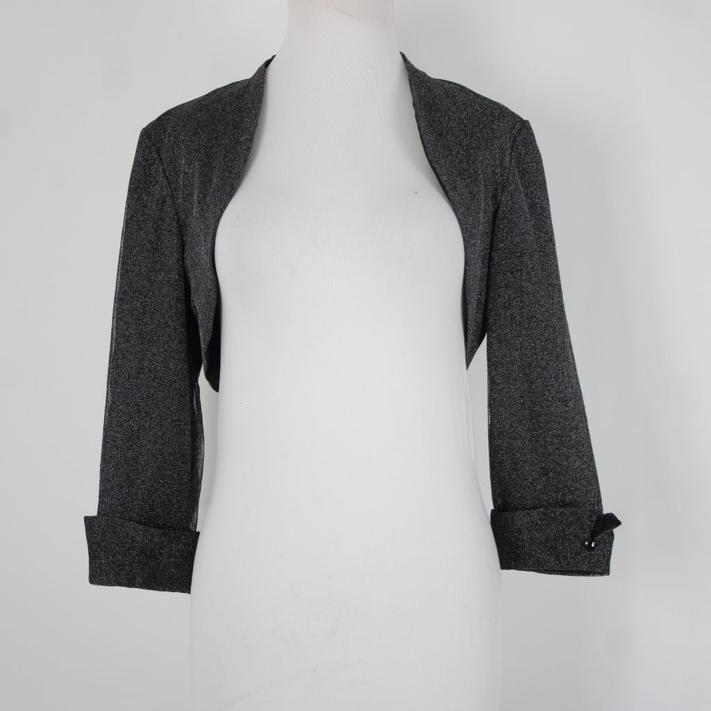 Dress Barn Collection Sz 8 Black Silver Lined Metallic Nylon Wrap Bolero Sweater