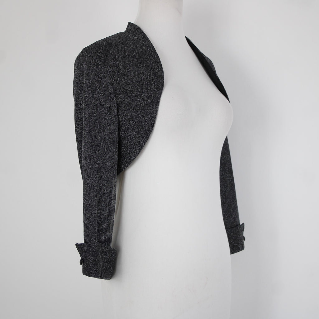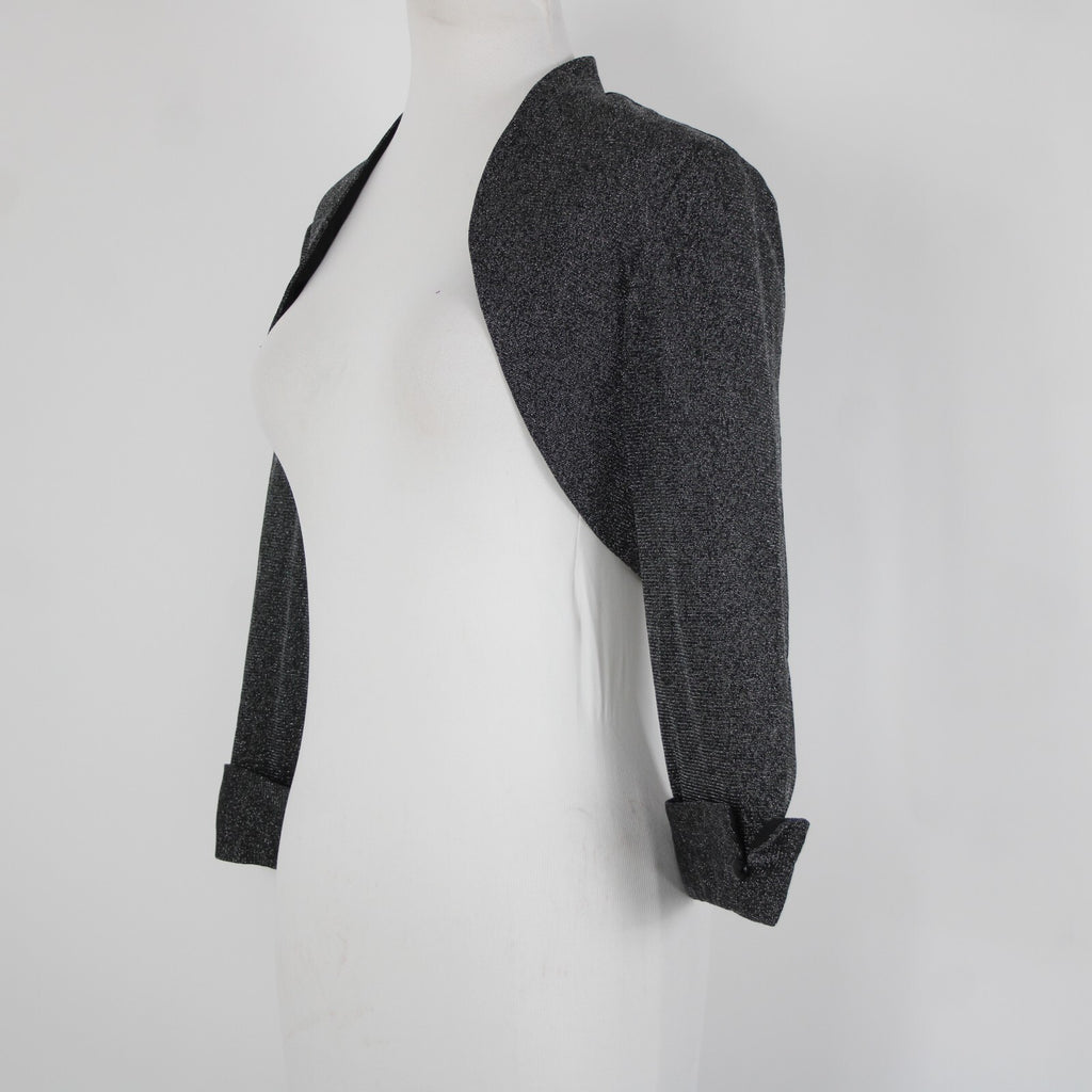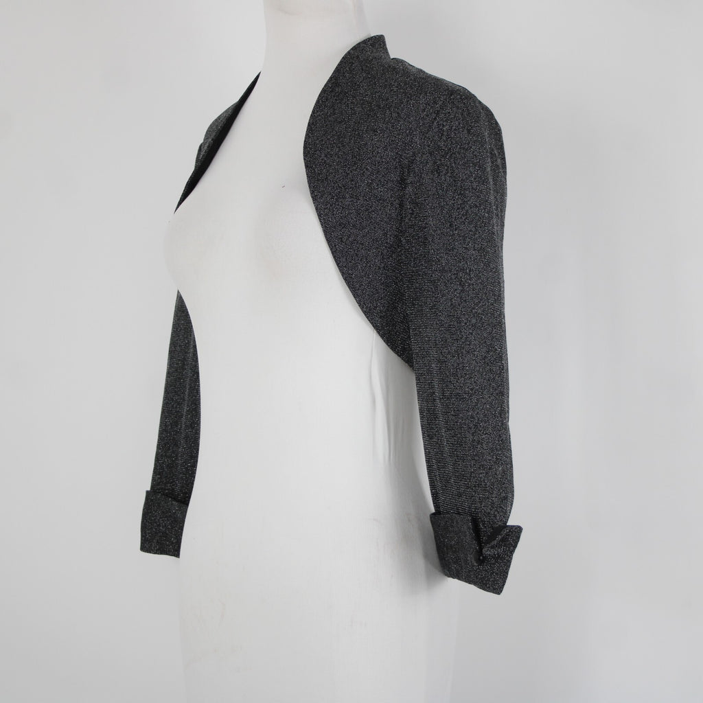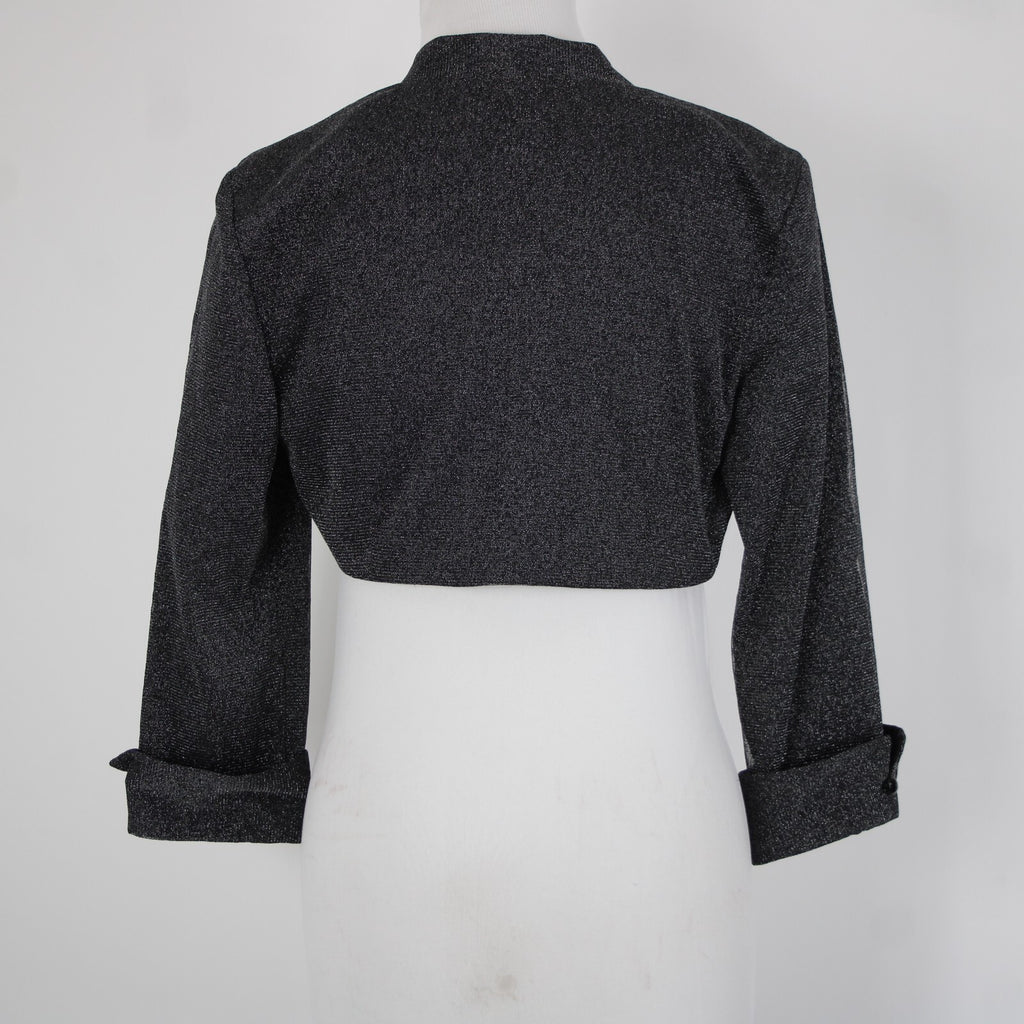 Dress Barn Collection Sz 8 Black Silver Lined Metallic Nylon Wrap Bolero Sweater