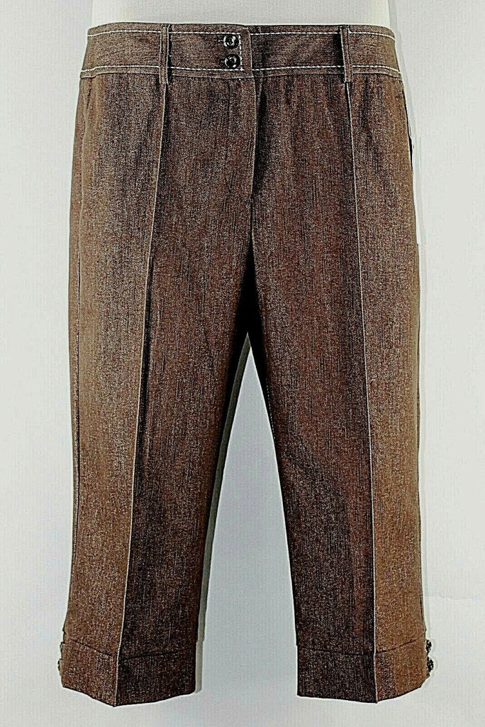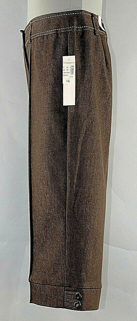 Dressbarn NEW Sz 14 x 19 Brown Cotton Poly Blend Stretch Crop Capri Pant