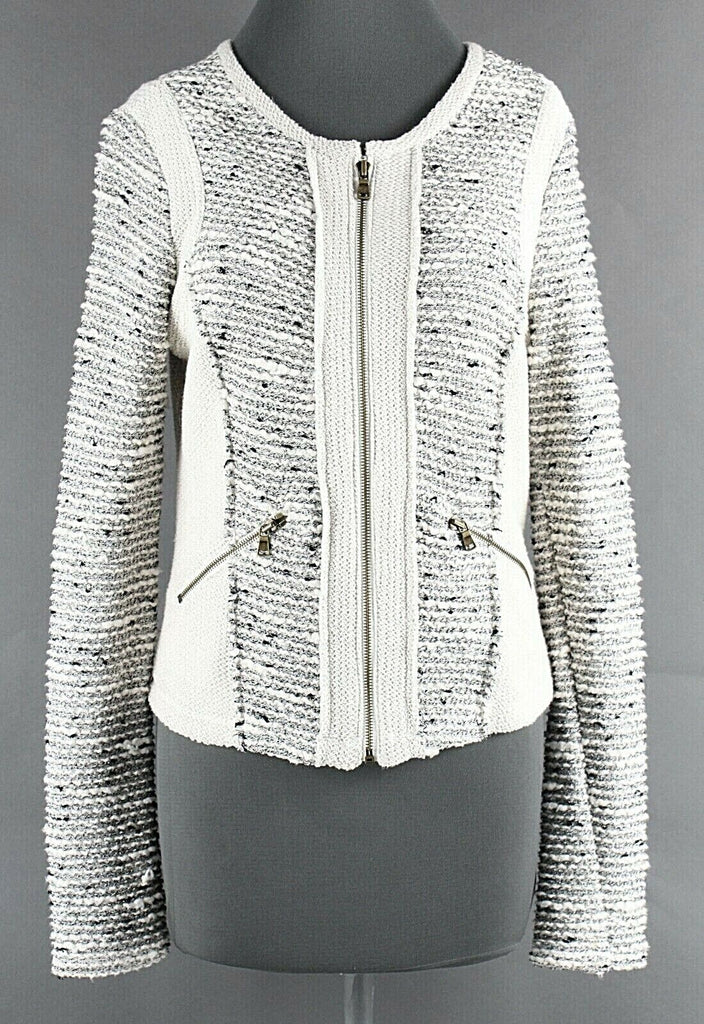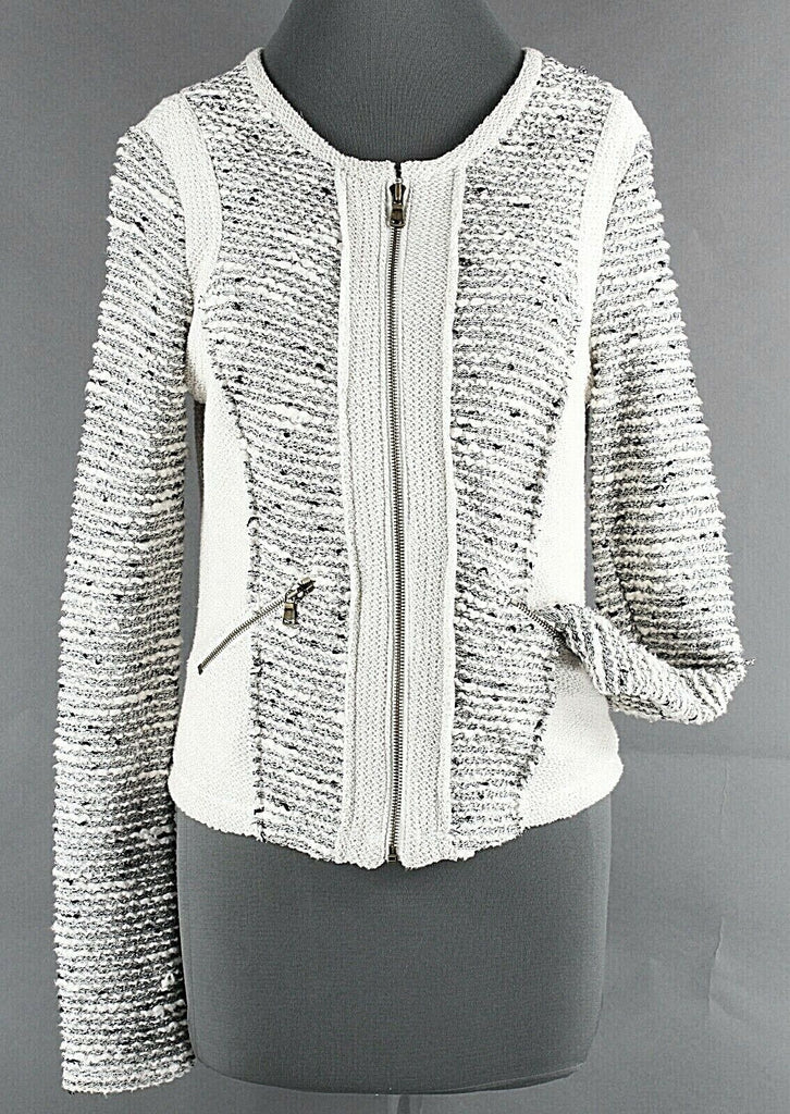 Drew Sz S Ivory Multi Nubby Zip Front Cotton Blend Sweater Knit Blazer Jacket