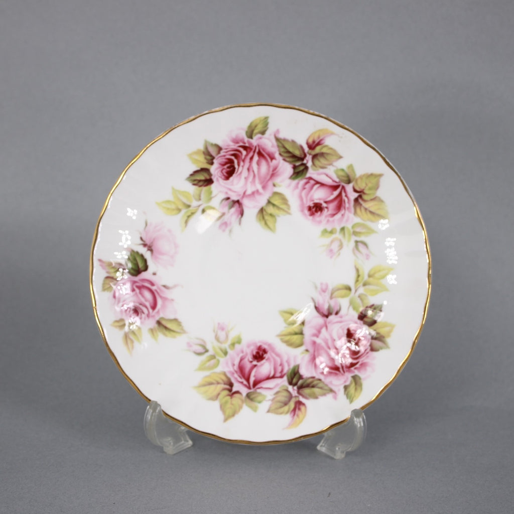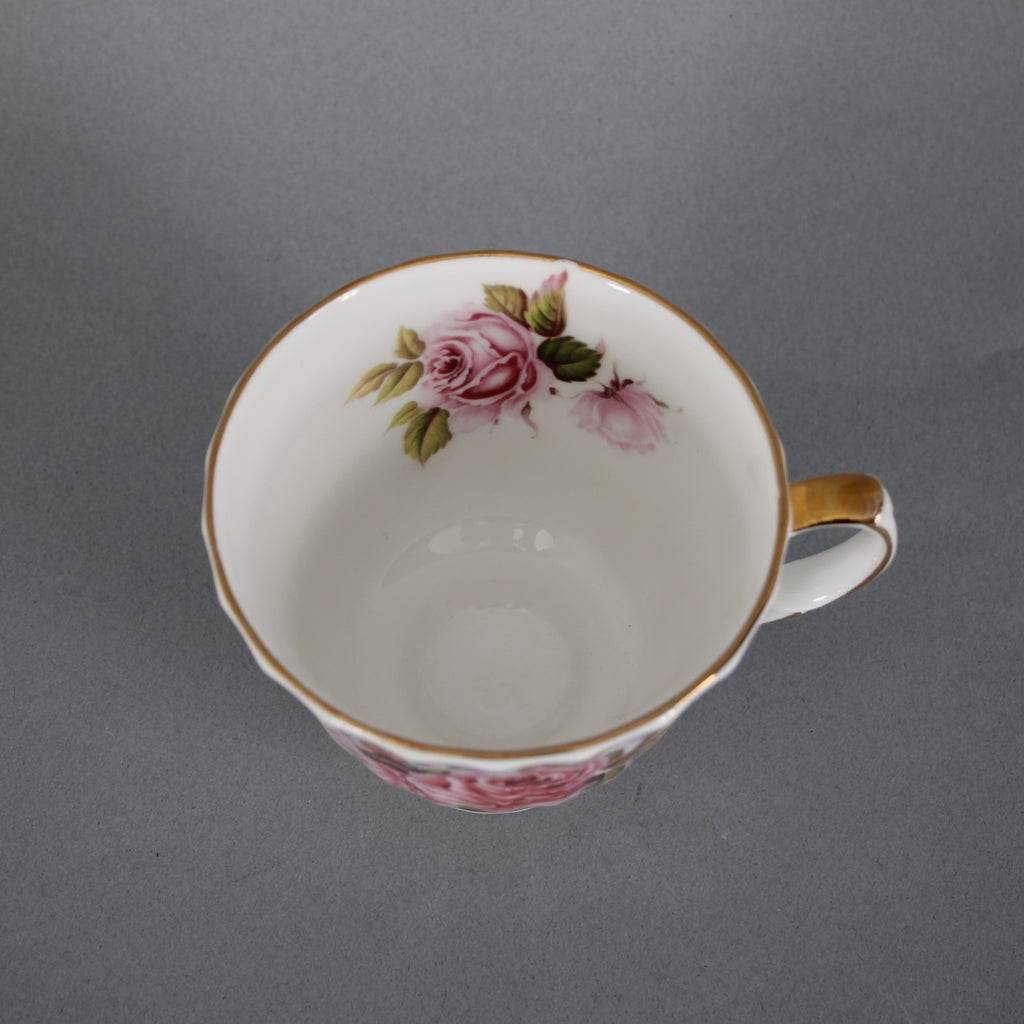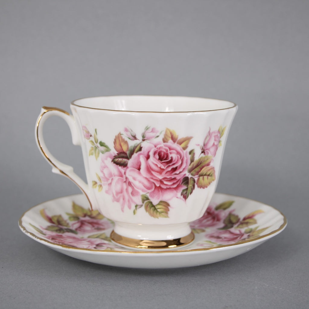 Duchess Teacup Saucer Pink Rose Pattern Fluted Gold Trim Teacup w Saucer Set