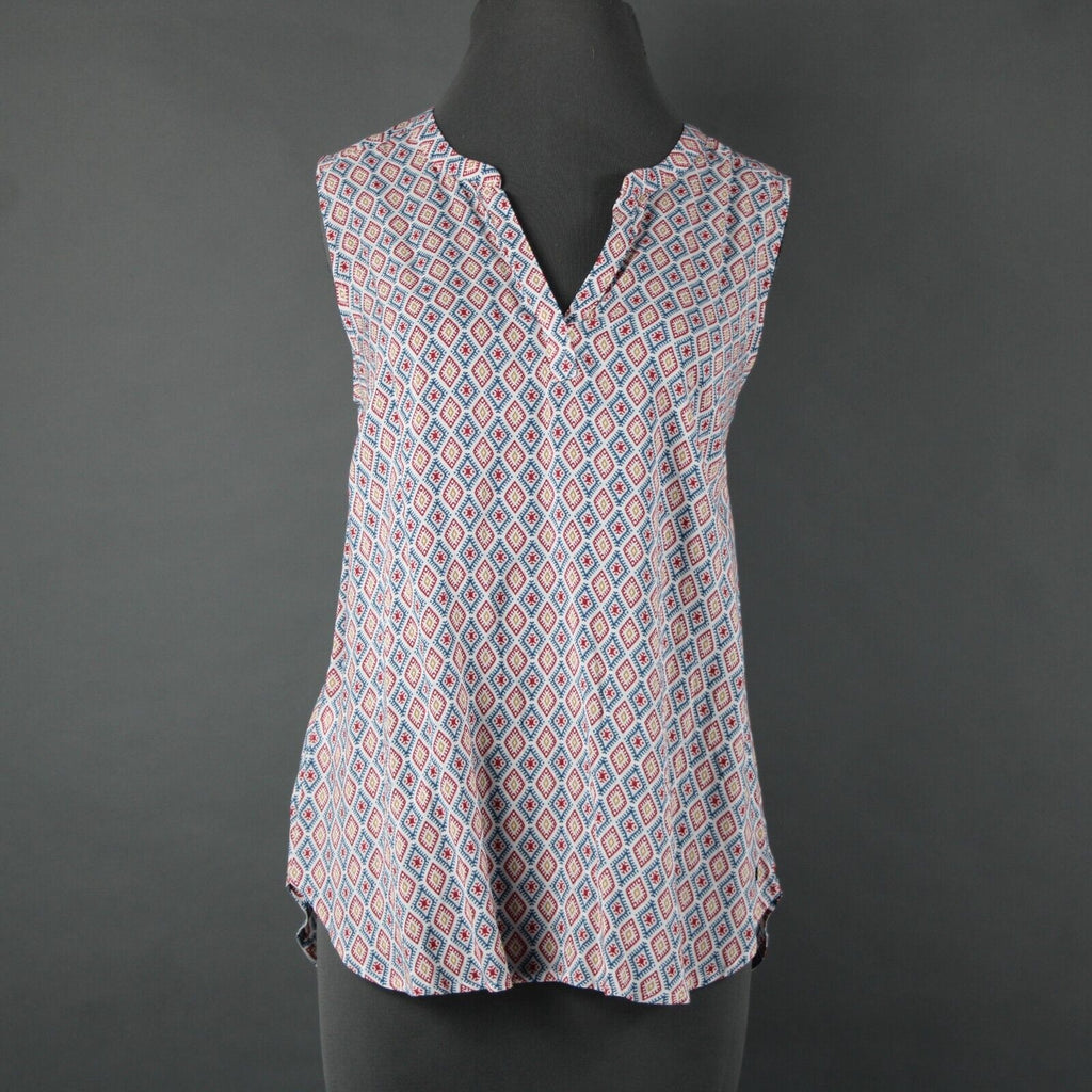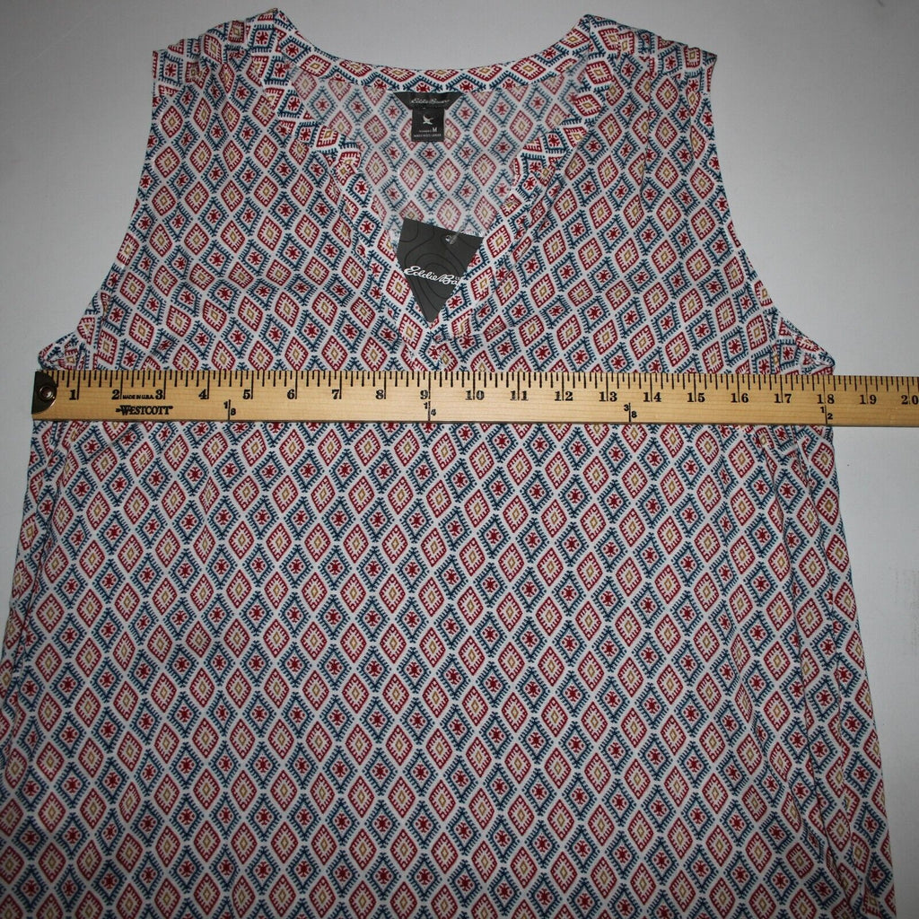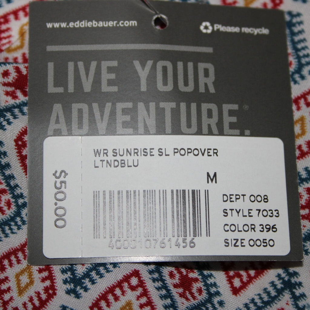 Eddie Bauer NEW $50 Sz M White Red Multi Color Sunrise Popover 100% Rayon Top
