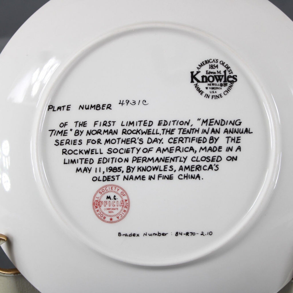Edwin M Knowles 1854 Mending Time By Norman Rockwell # 4931C Plate