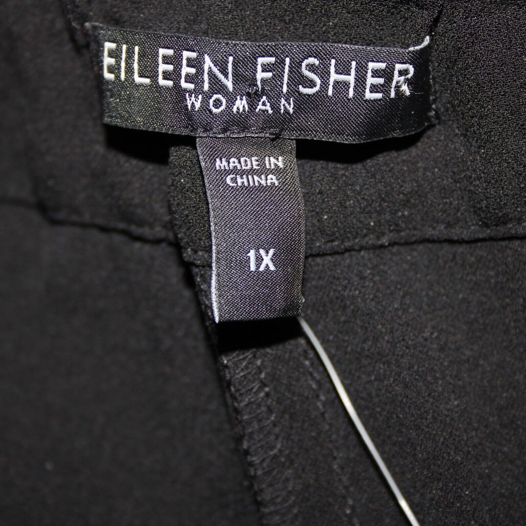 Eileen Fisher NEW $248 Georgette Crepe Sz 1x x 34 Black Slim 100% Silk Pant