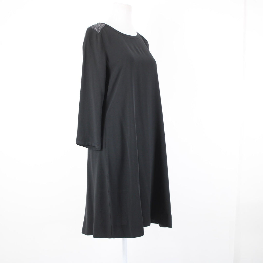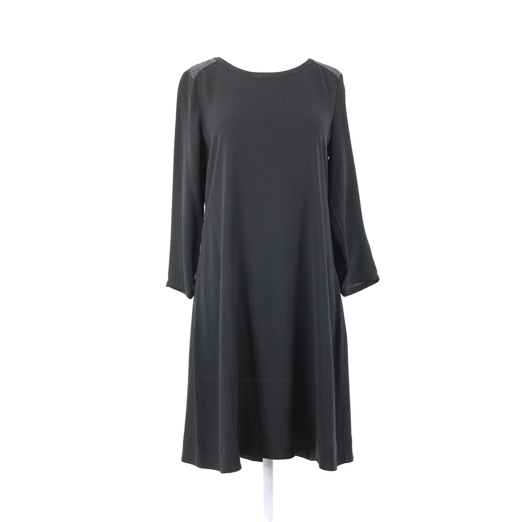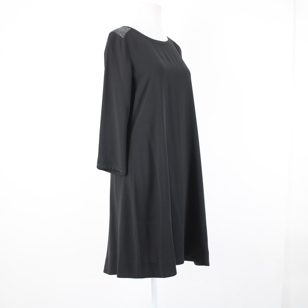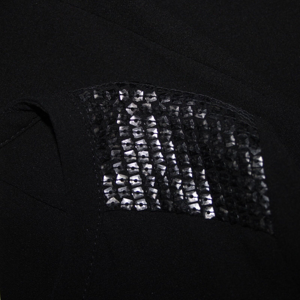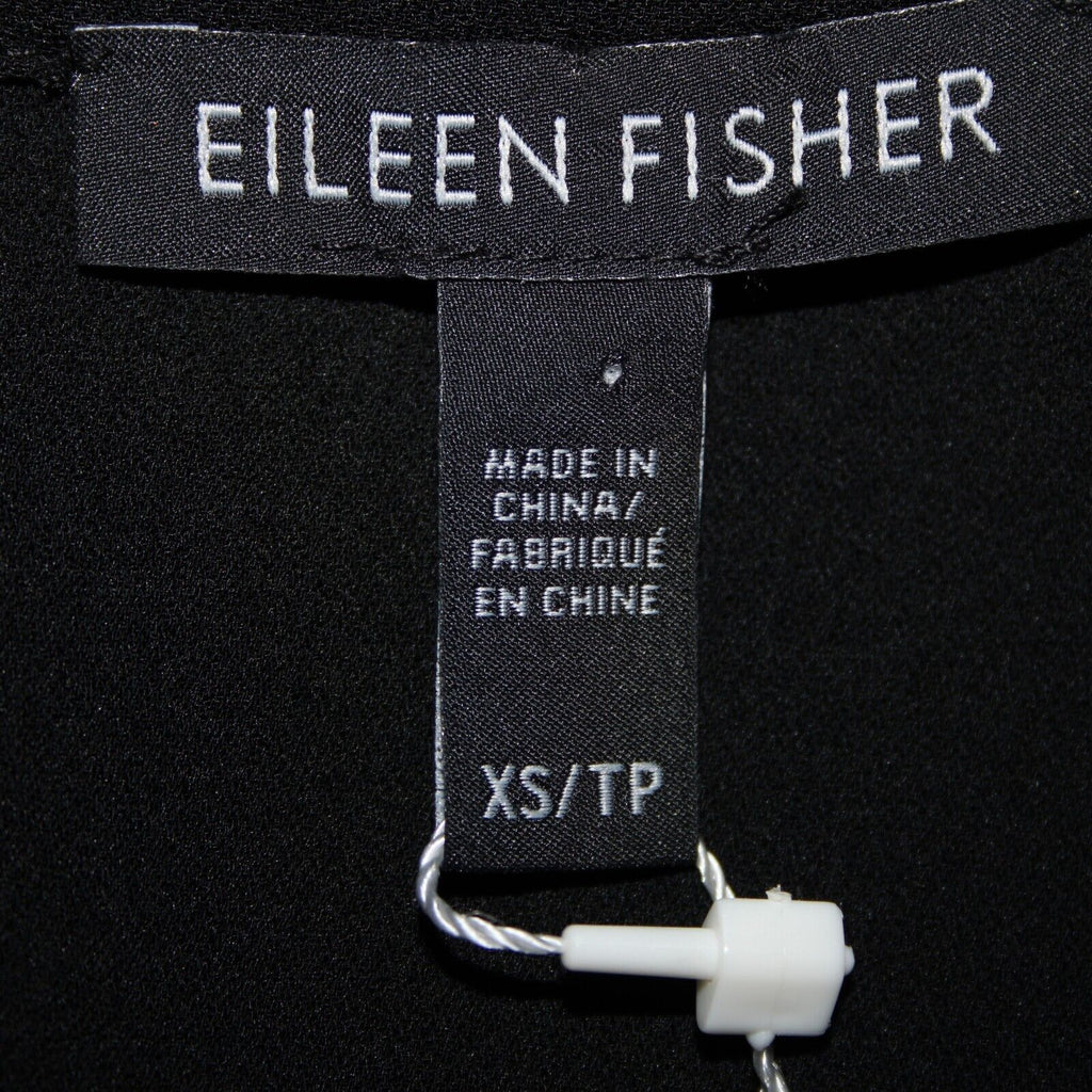 Eileen Fisher NEW Sz XS Black Sequin Shoulder 3/4 Sleeve Unlined Sheer Dress