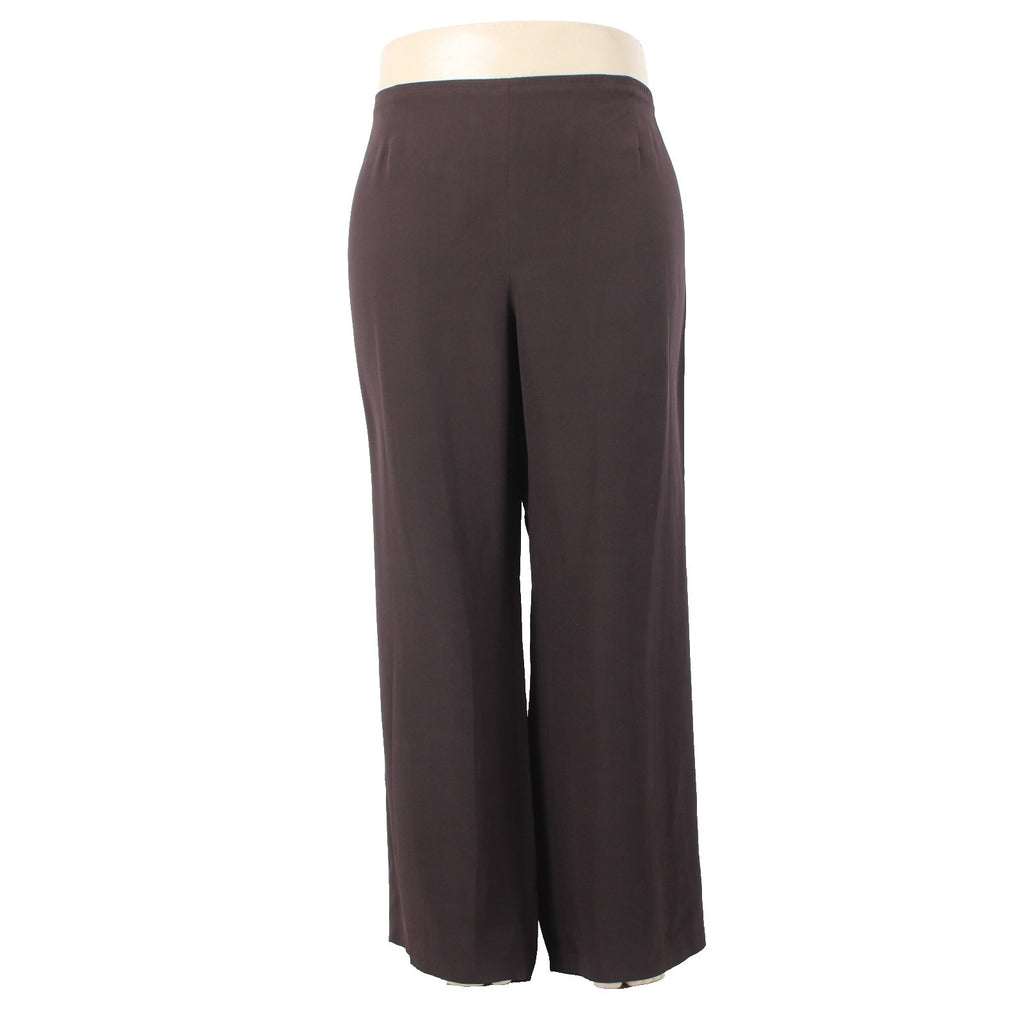 Eileen Fisher Pant NEW $155 Sz 2X x 31 Dark Brown Crepe Elastic Waist 100% Silk
