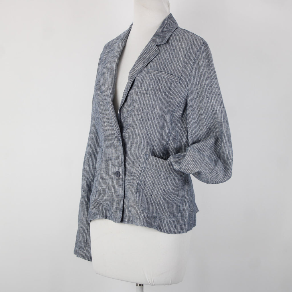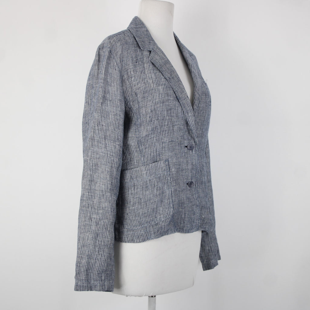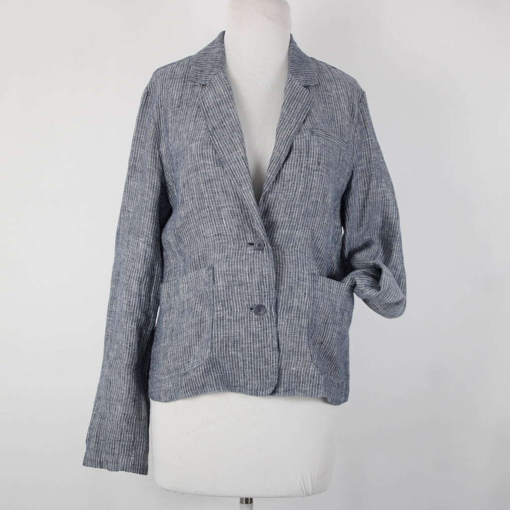 Eileen Fisher Sz M Navy Blue White Striped Unstructured 100% Linen Casual Jacket