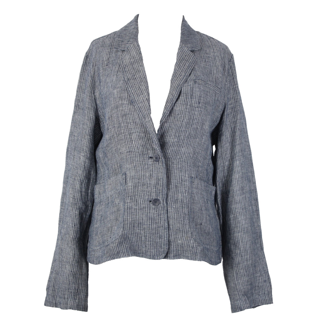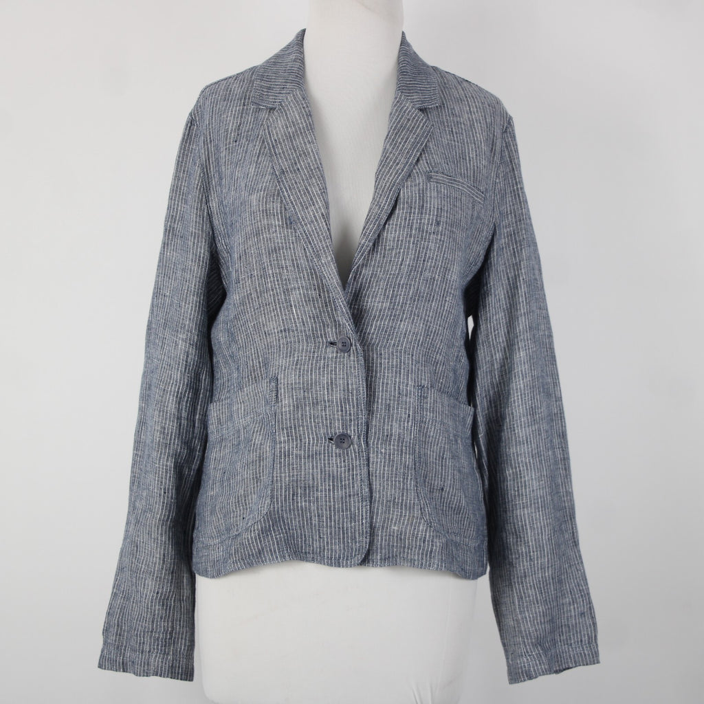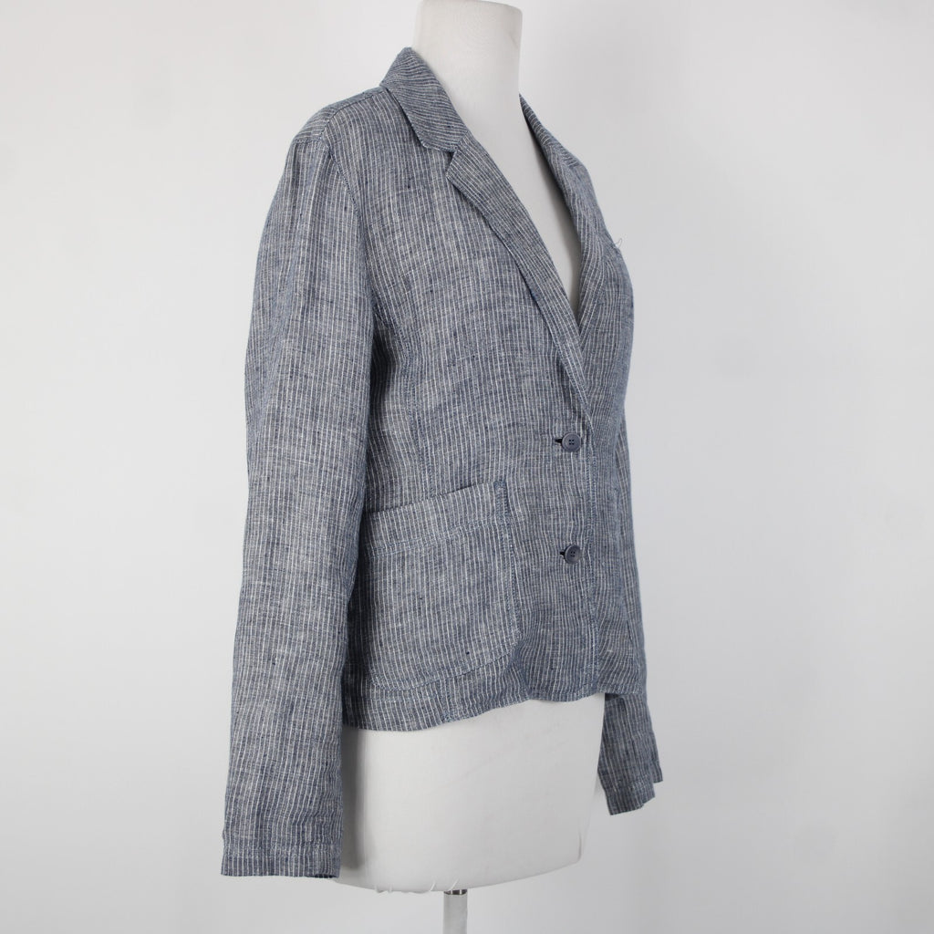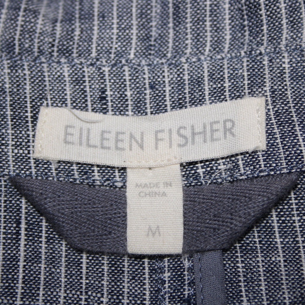 Eileen Fisher Sz M Navy Blue White Striped Unstructured 100% Linen Casual Jacket