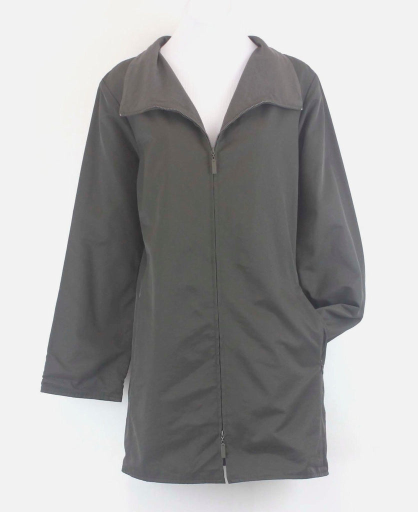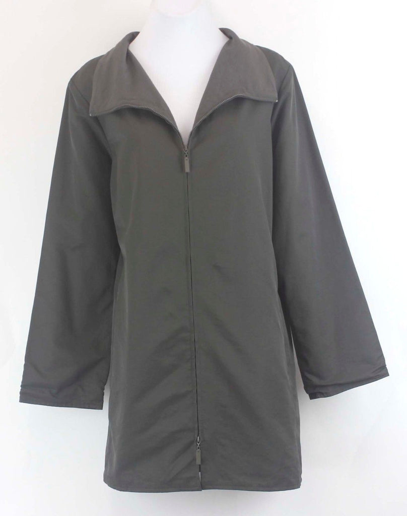 Eileen Fisher Sz S Olive Zip Front Pocketed Mandarin Collar Cotton Blend Jacket