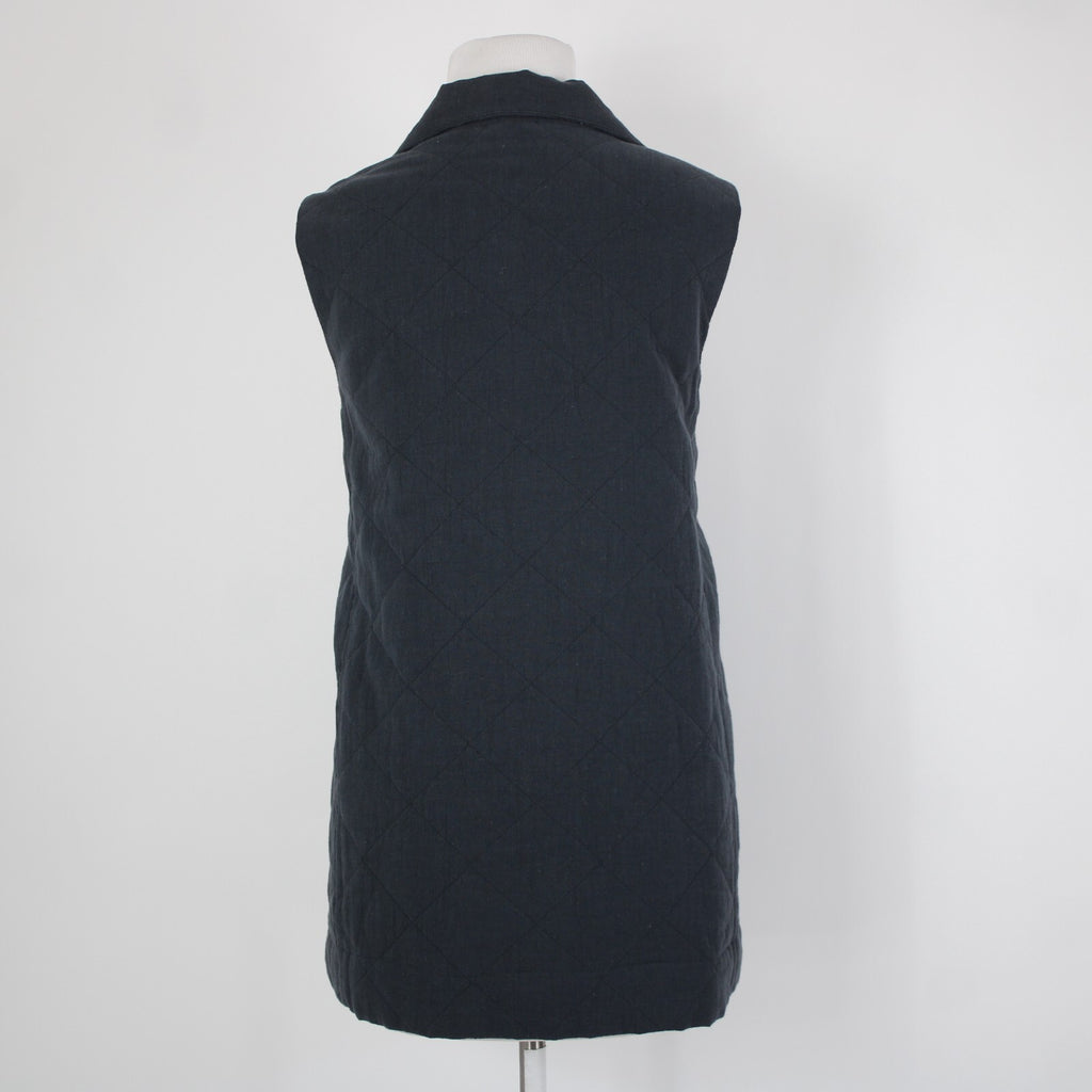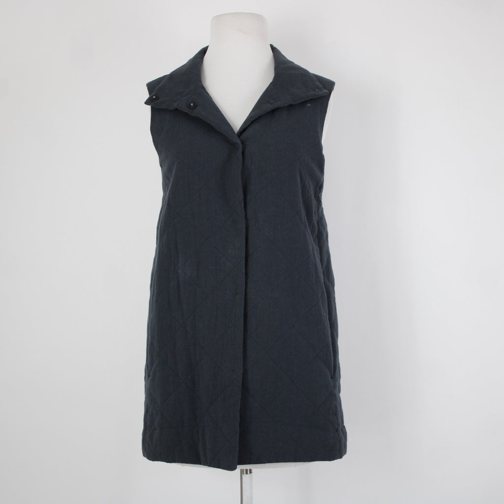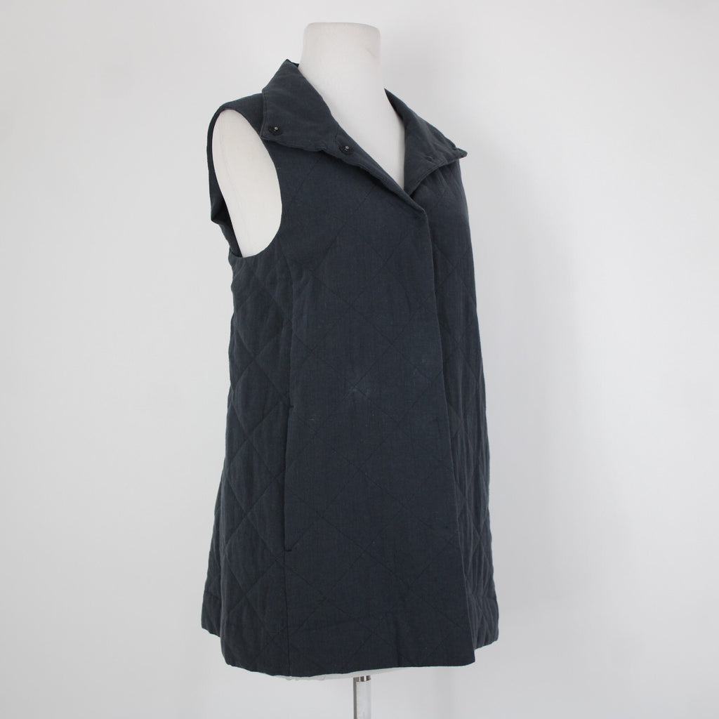 Eileen Fisher Sz XS Gray Collared Pockets Lined Organic Linen Cotton Vest