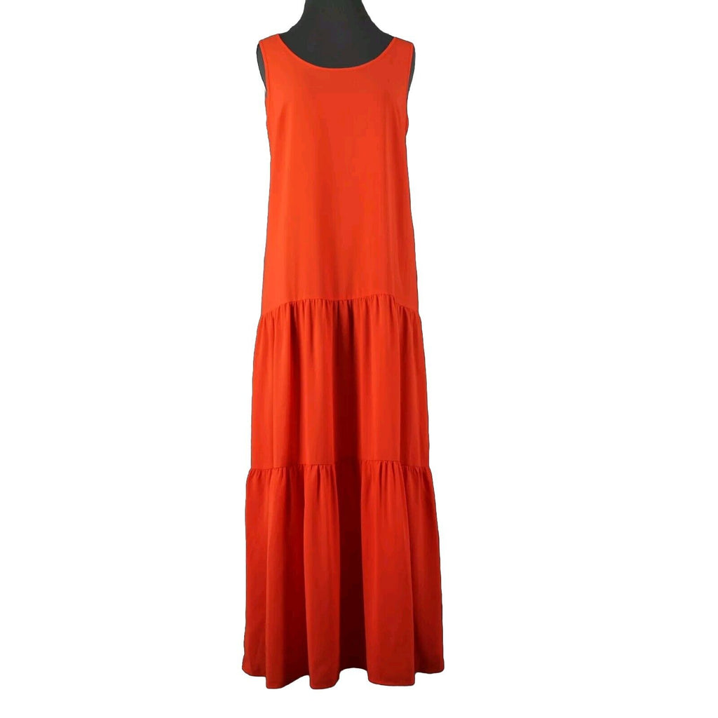 Elizabeth And James Sz S Orange Sheer Tiered Side Zip Long 100% Polyester Dress
