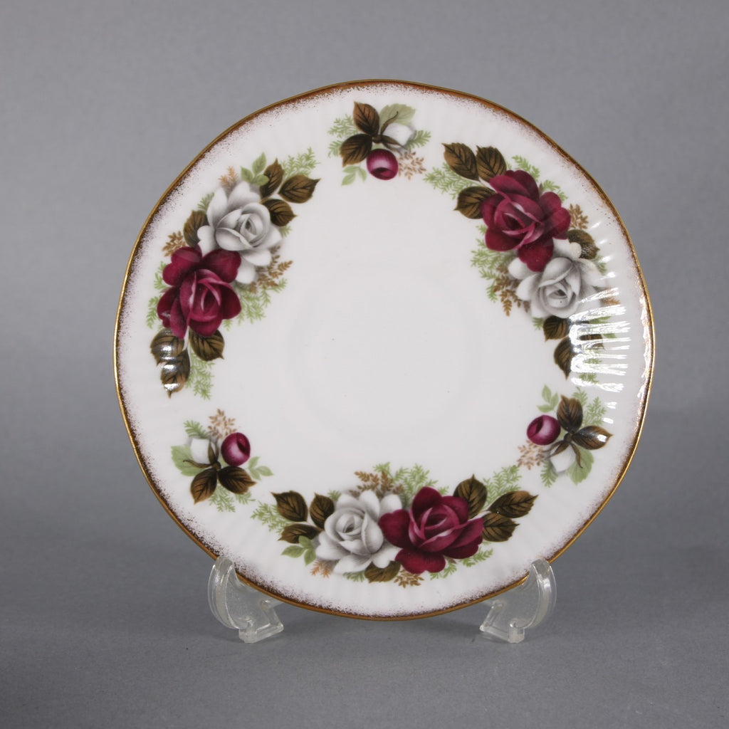 Elizabethan American Beauty Teacup Saucer Burgundy Gray Vintage Teacup Saucer