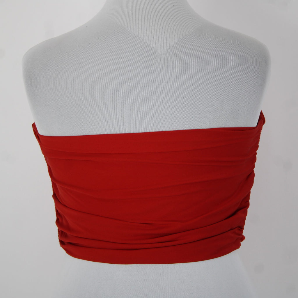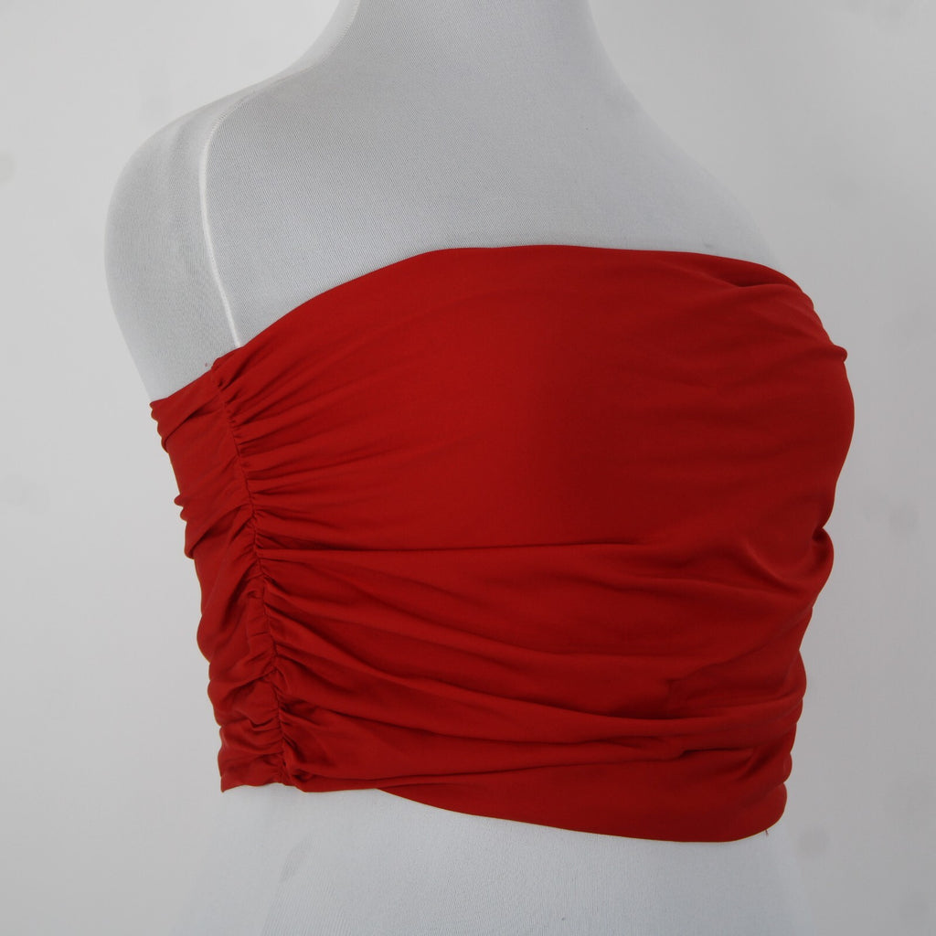Ellen Tracy Allard Sz XL Red Silk Blnd Ruched Boned Sides Strapless Side Zip Top