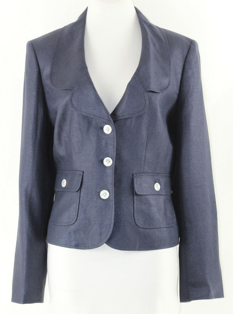 Ellen Tracy NEW $269 Sz 8 Navy Blue Polished Cotton Linen Lined Jacket