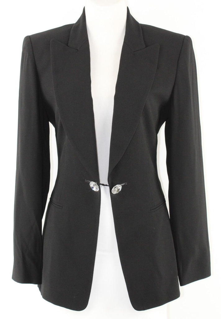 Ellen Tracy Sz 4 Black Large Double Rhinestone Closure Acetate Blend Jacket