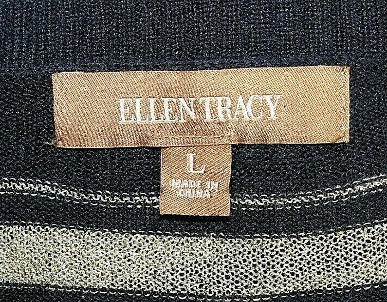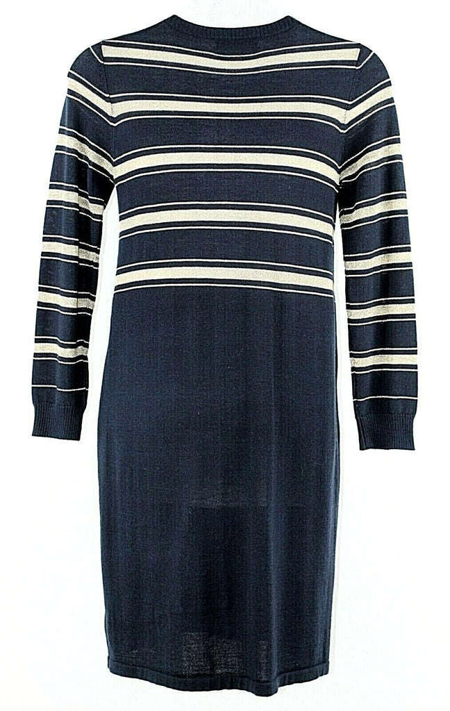 Ellen Tracy Sz L Navy Gold Acrylic Wool Blend Pocketed Knit Dress