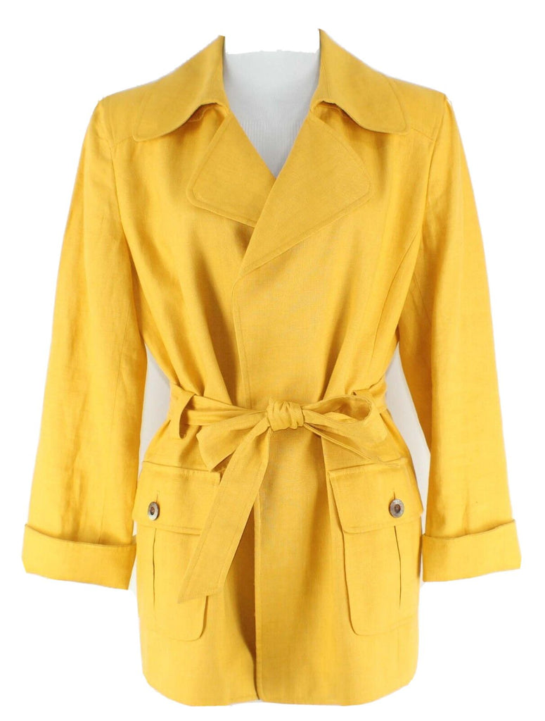 Ellen Tracy Sz S Goldenrod Yellow Button Pocket Cuff Belted Wrap Linen Jacket