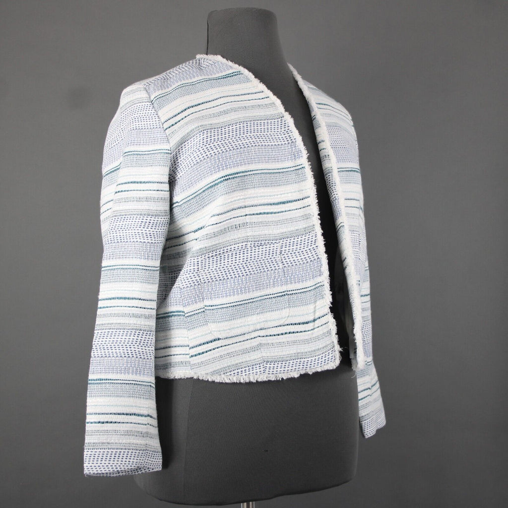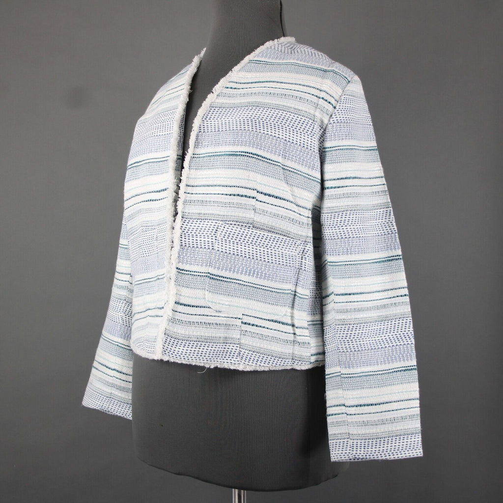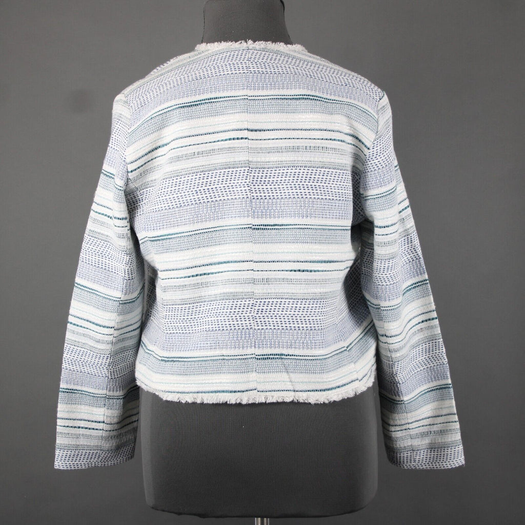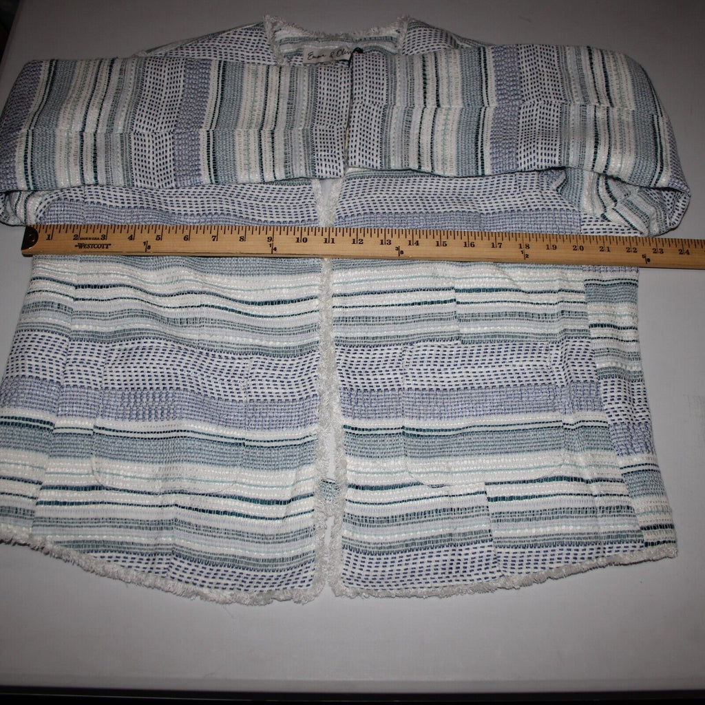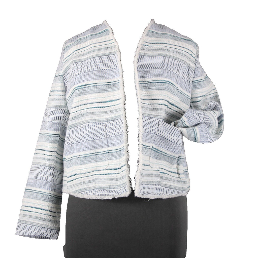 Emma Olivia NEW Sz XL White Blue Teal Distressed Edge Cotton Acrylic Jacket
