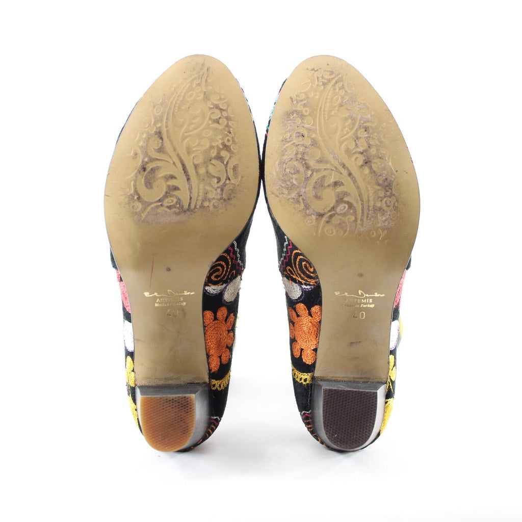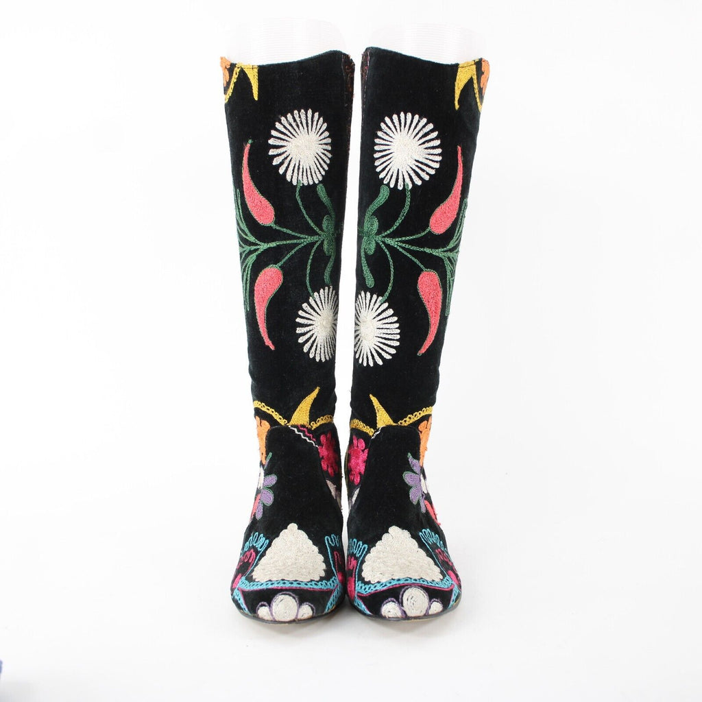 Erkan Demir Artemis Sz 40 Black Multi Color Floral Embroidered Calf High 3" Boot