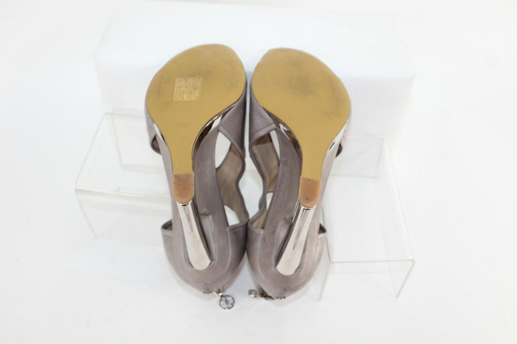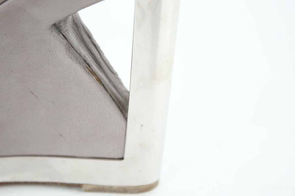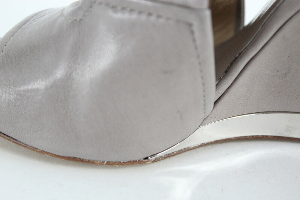 Fabi $380 Sz 39 Taupe Tan Lavender Silver Leather 4" Wedge Italian Heel