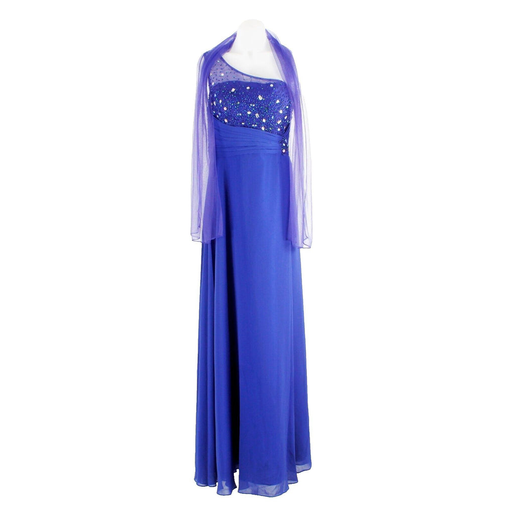 FabuLuxe NEW Sz XL Blue Beaded One Shoulder Lined Long Poly Tulle Accent Dress