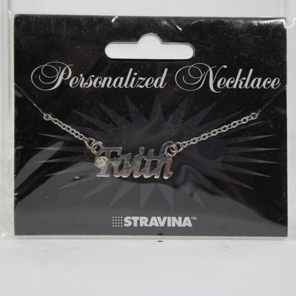 FAITH NEW Name Silvertone Rhinestone 14.5" w 4.5" Multi Ring Ext Necklace