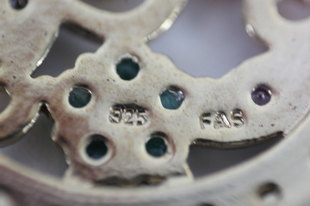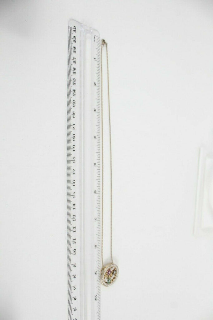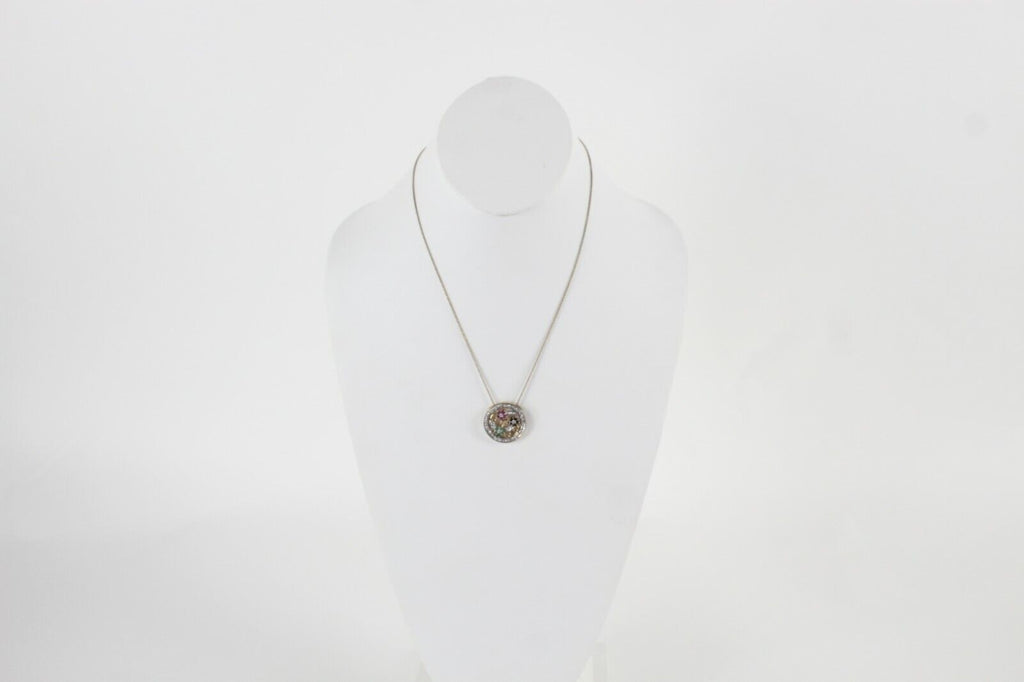 FAS 18in Sterling Silver Chain Blue Red Green Flower Stone Pendant Necklace