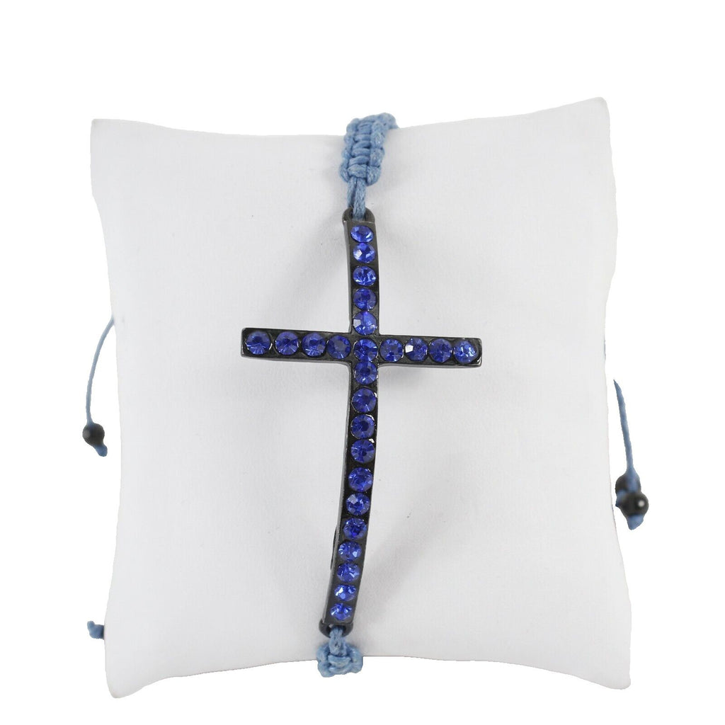 Fashion NEW $18.50 Adjustable Blue Macrame Rhinestone Cross Bracelet