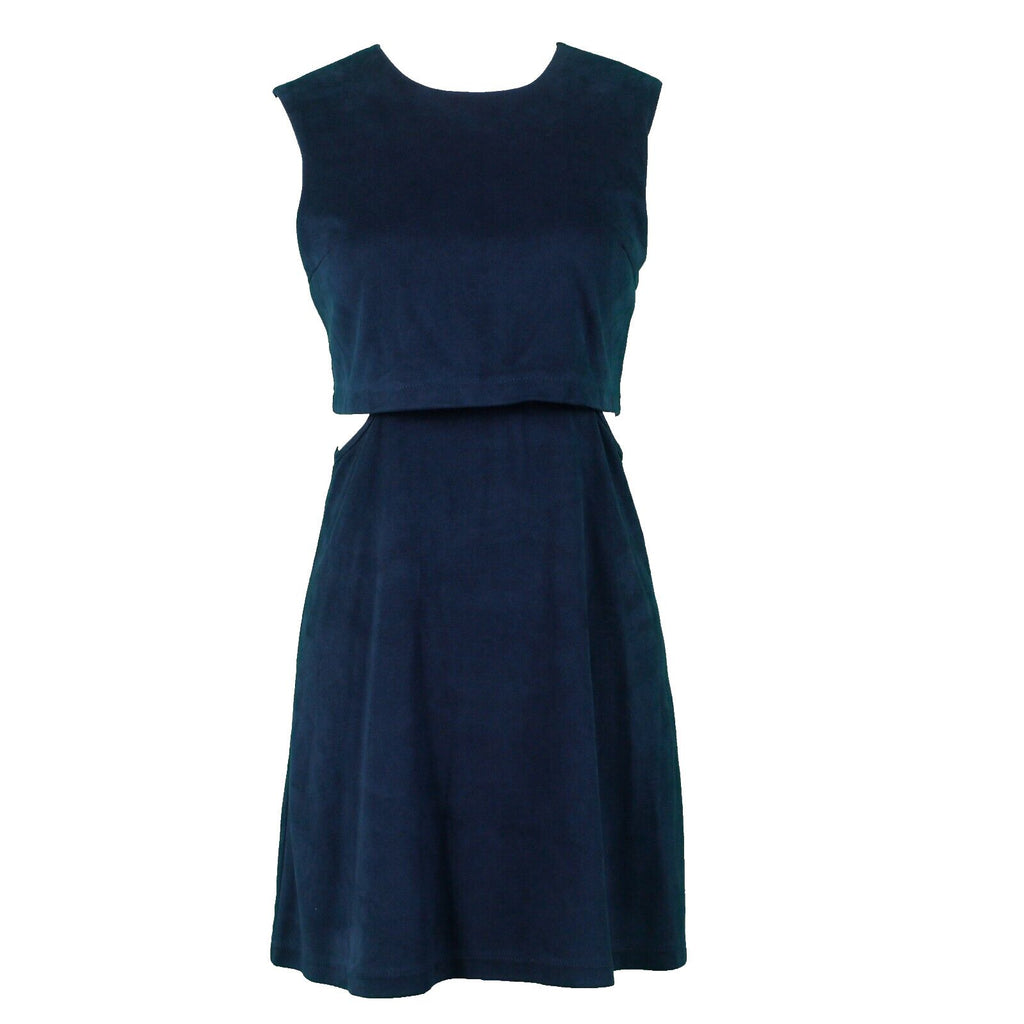 Fashion Union Sz 6 Navy Blue Cut Out Sides A Line Crop Top Vegan Suede Dress