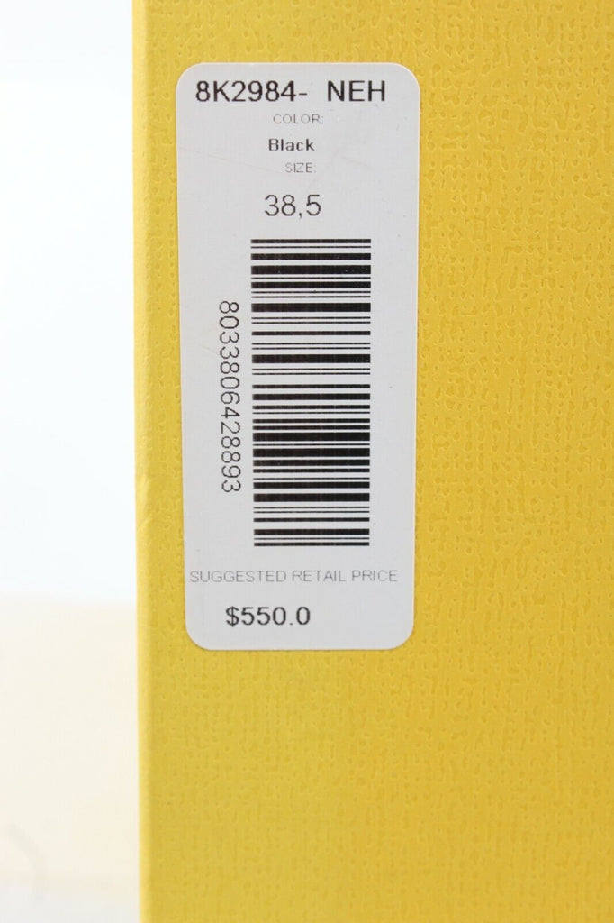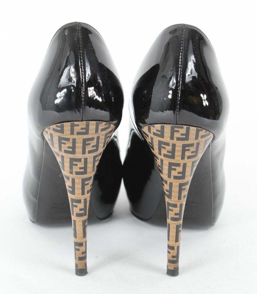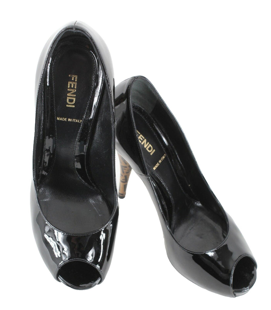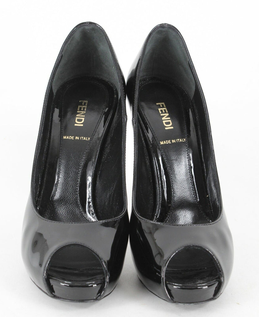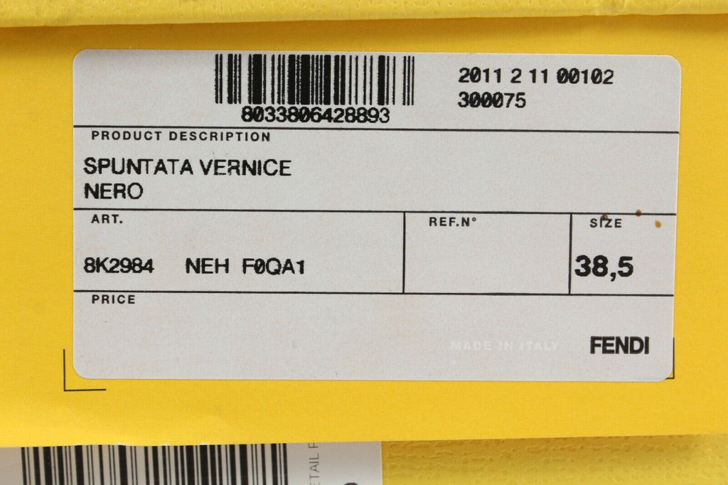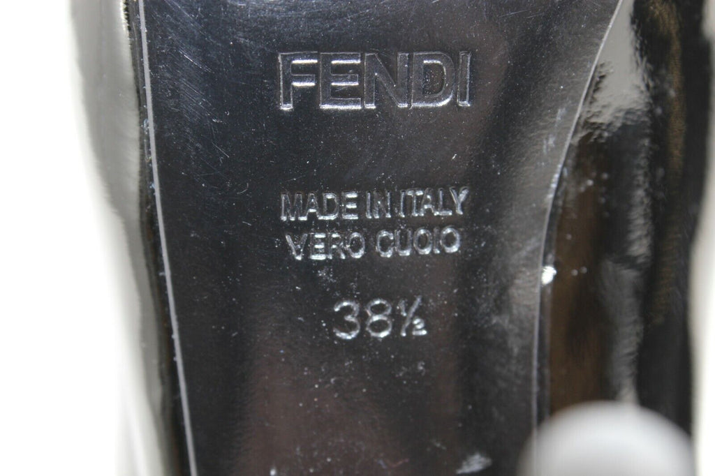 Fendi $550 Spuntata Vernice 38.5 Black Patent Leather Logo Platform 5" Heel