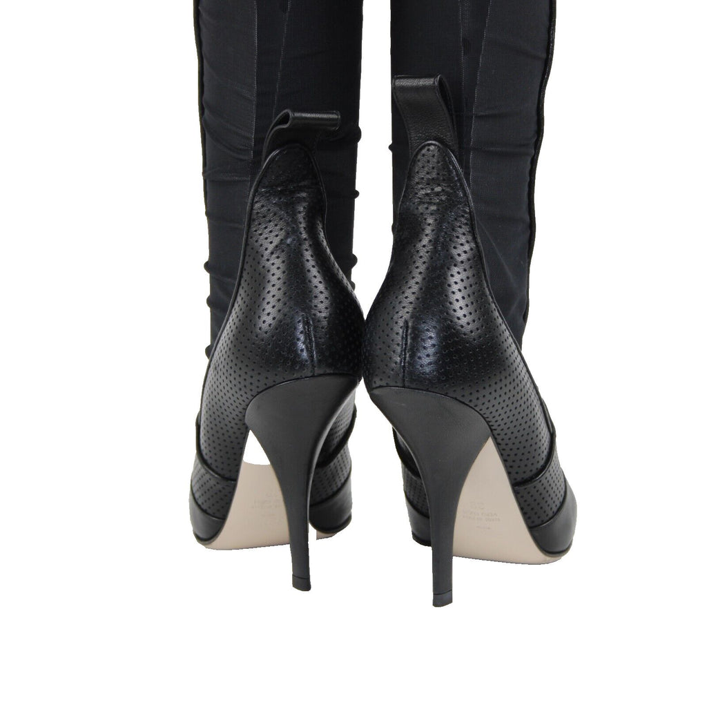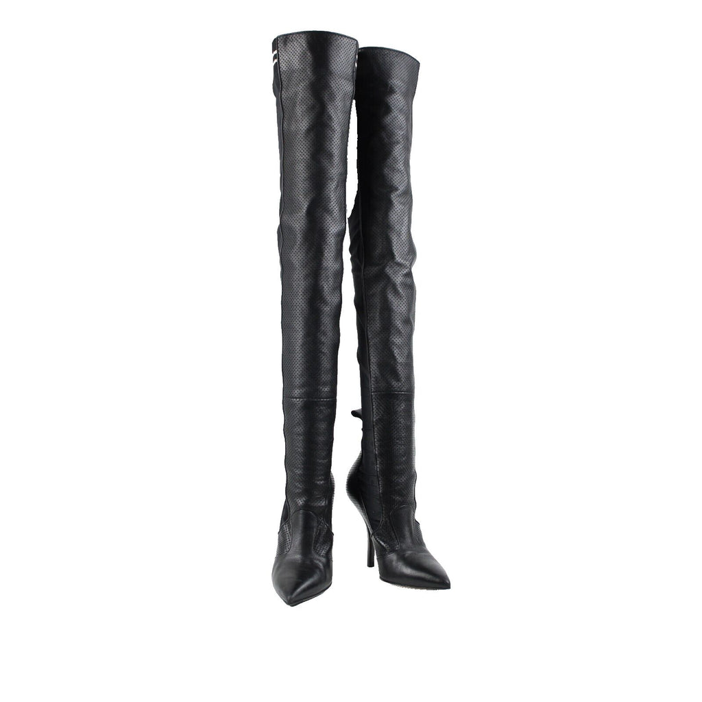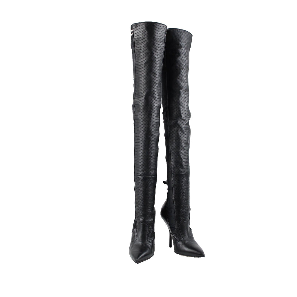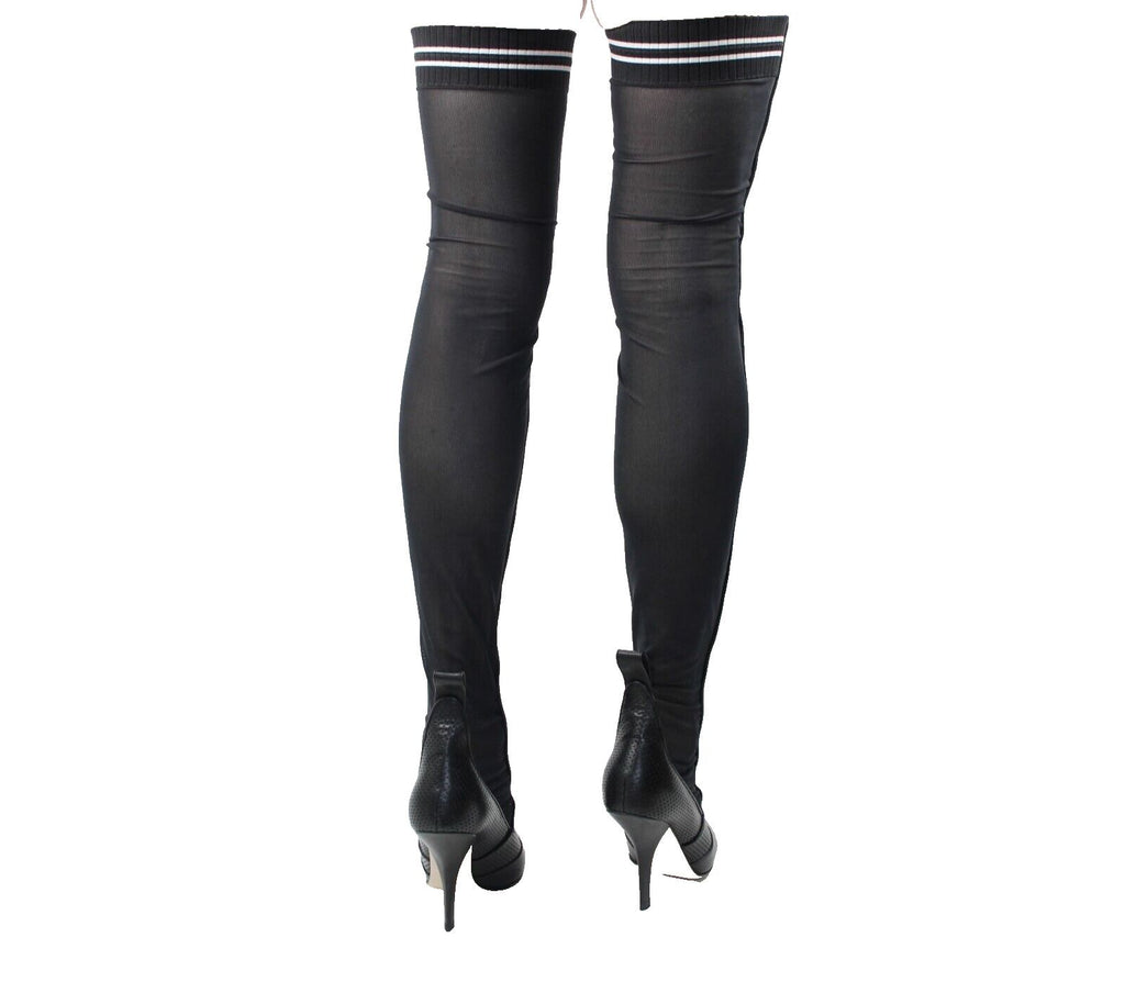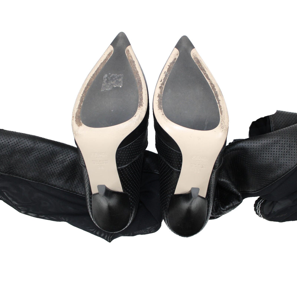 Fendi Rockoko Sz 38 Black White Leather Sheer Mesh Thigh High 4" Stiletto Boots