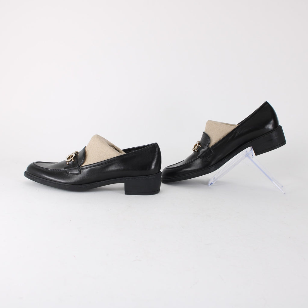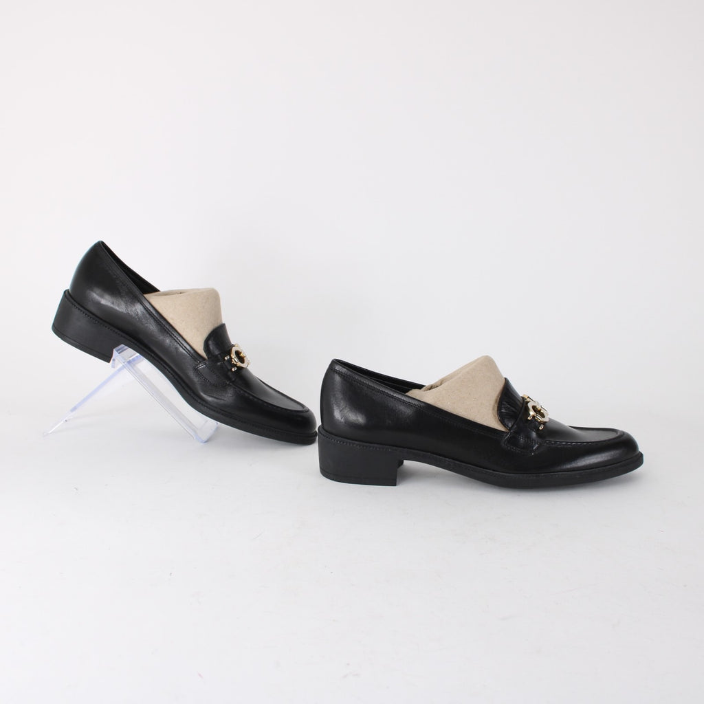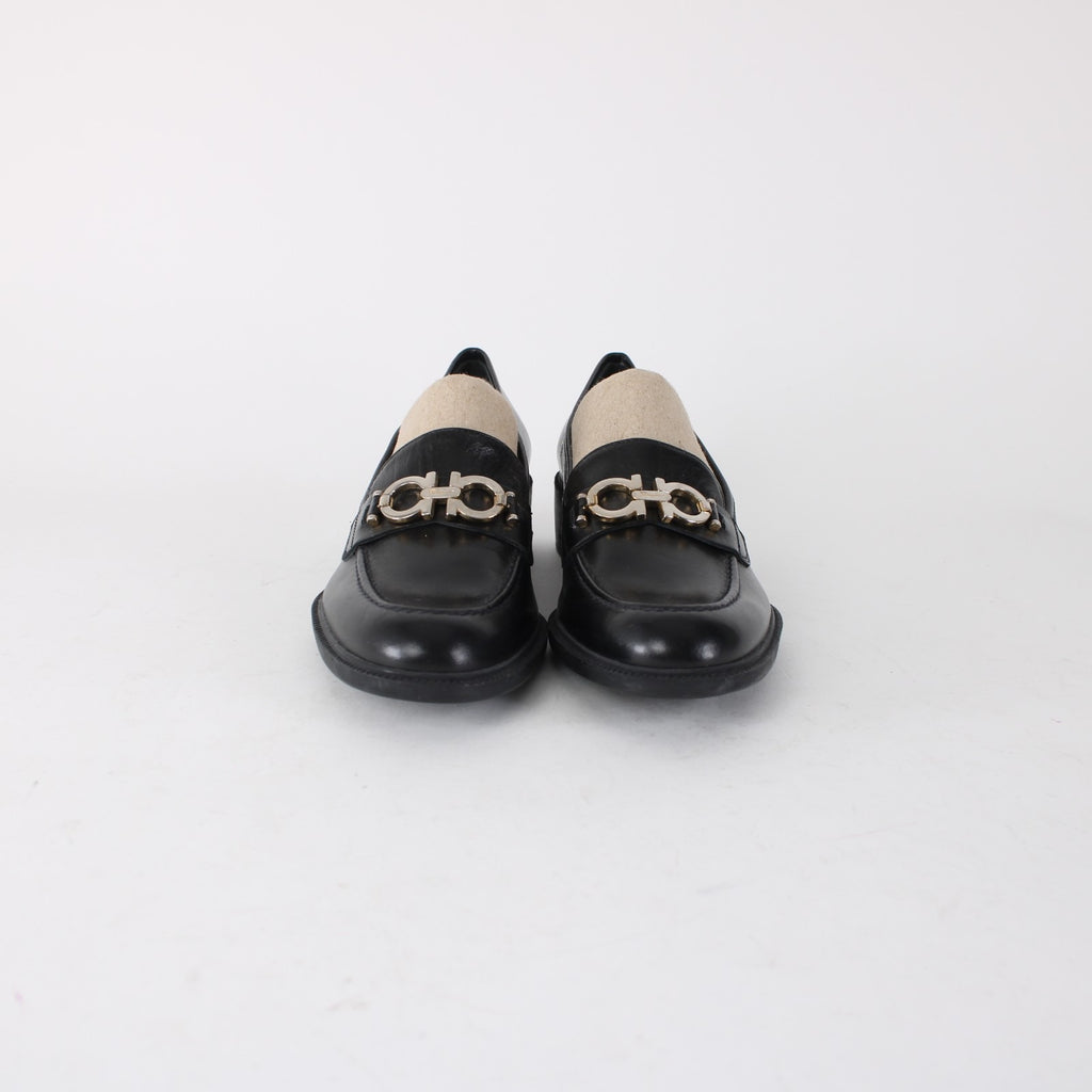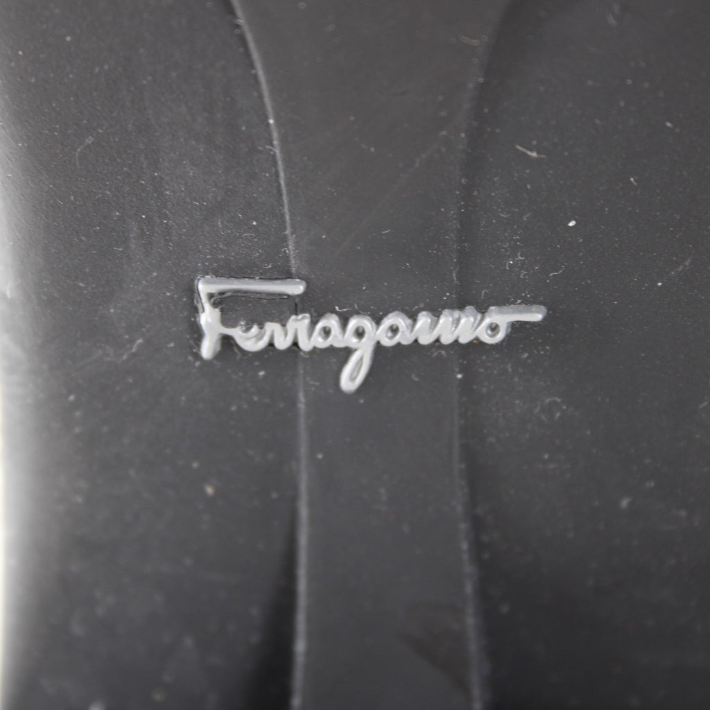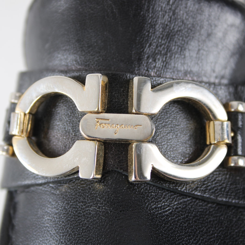 Ferragamo Heel Sz 7 A Black Gold Hardware Slip On Closed Toe Leather 1" Heel