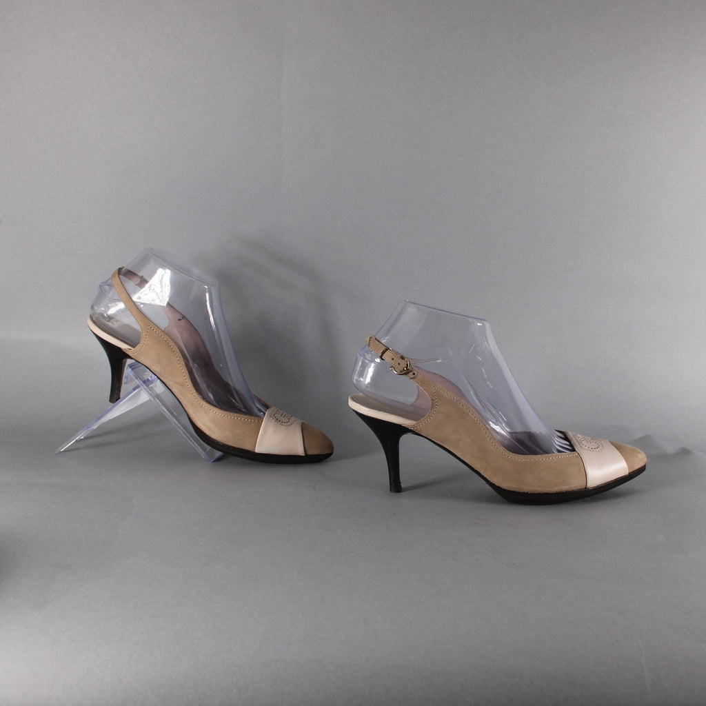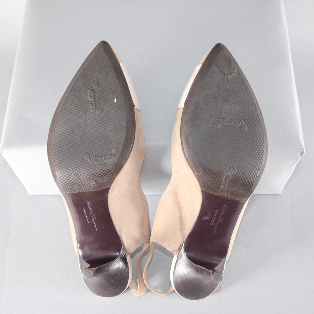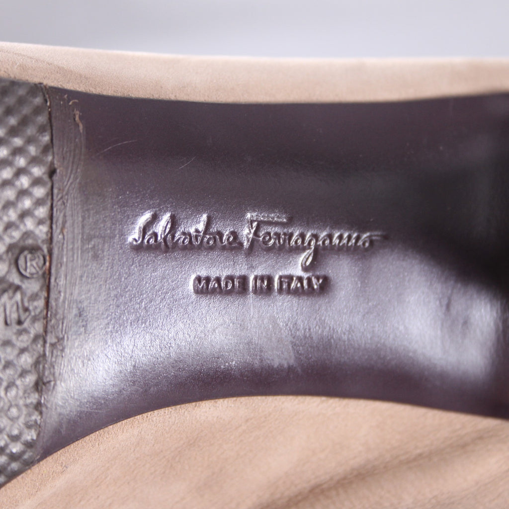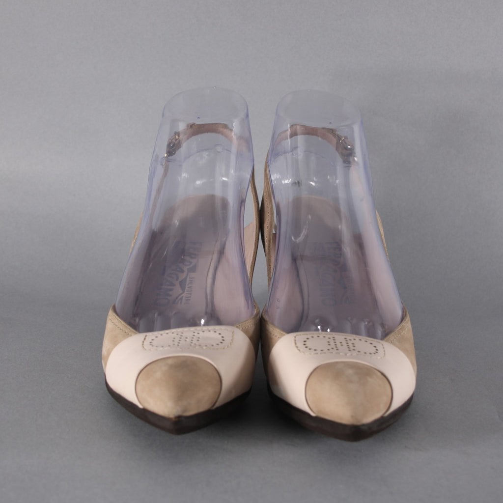 Ferragamo Heels Sz 7.5 Tan Brown Pointed Toe Suede Leather 2" As Is Heel