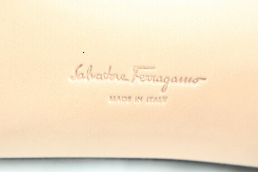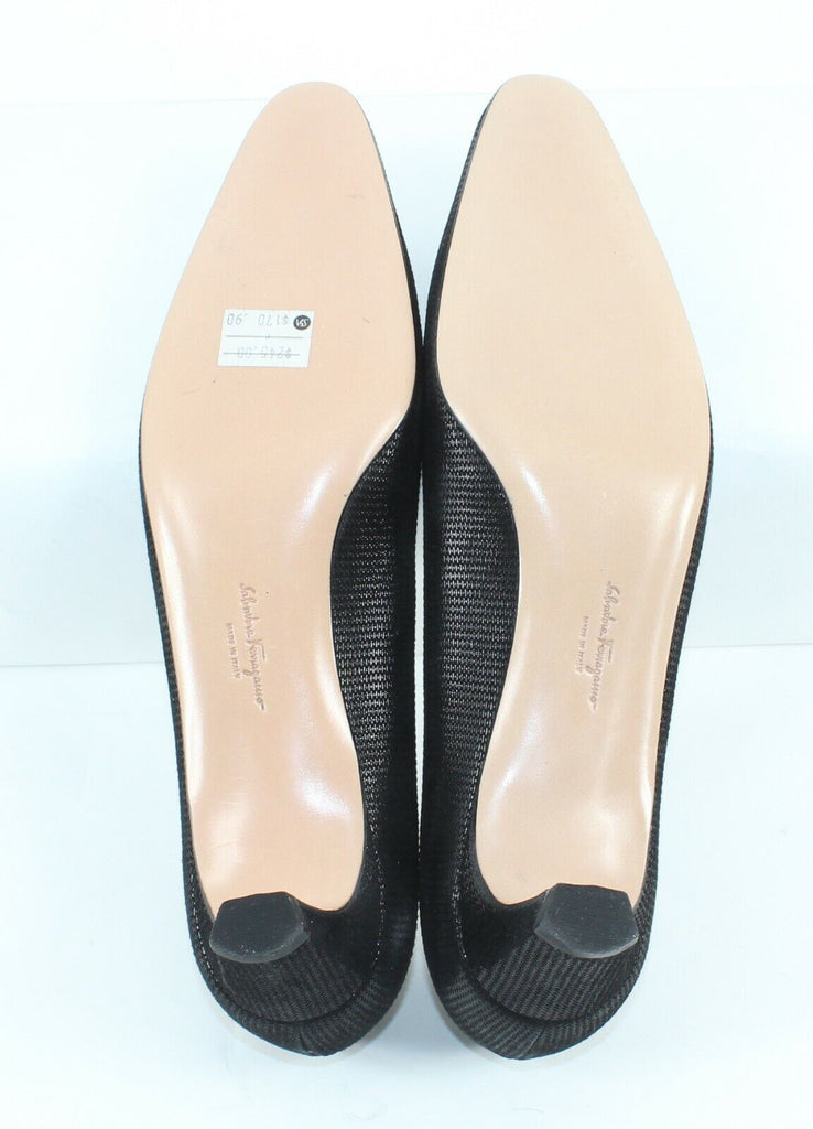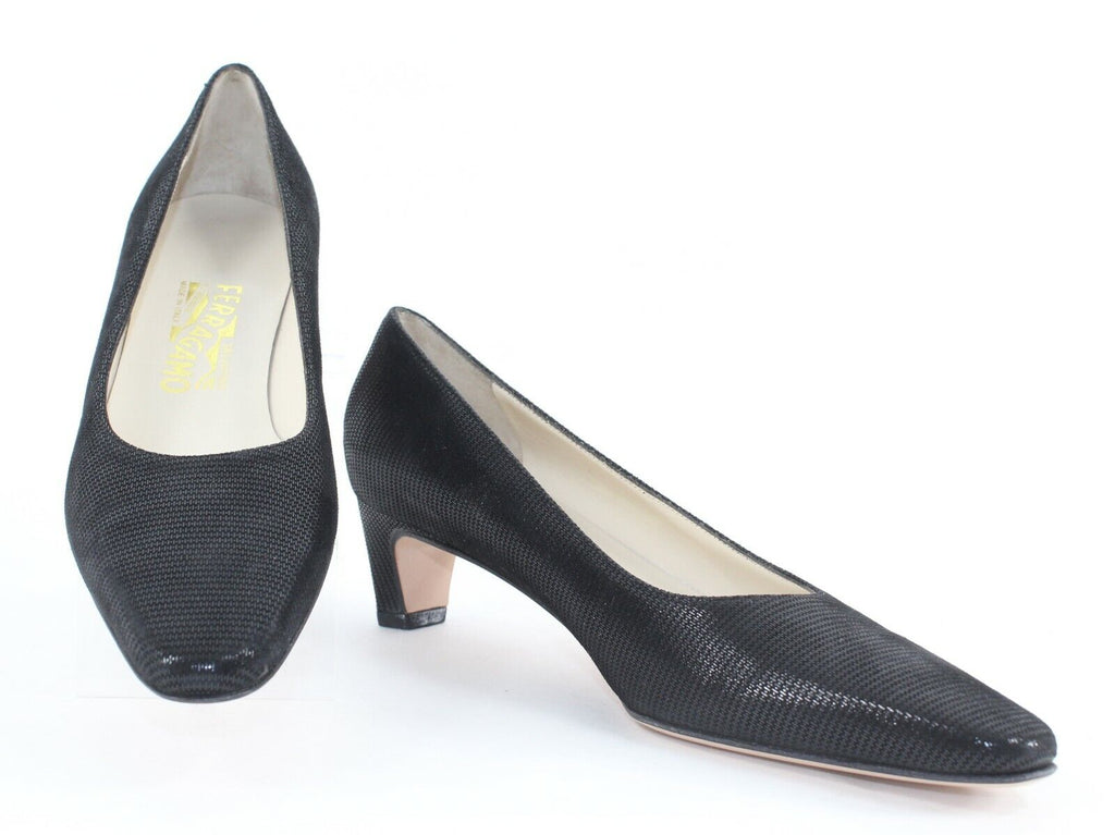 Ferragamo New $170 Sz 8.5AA Narrow Black Textured Spiga Calf 2" Heels