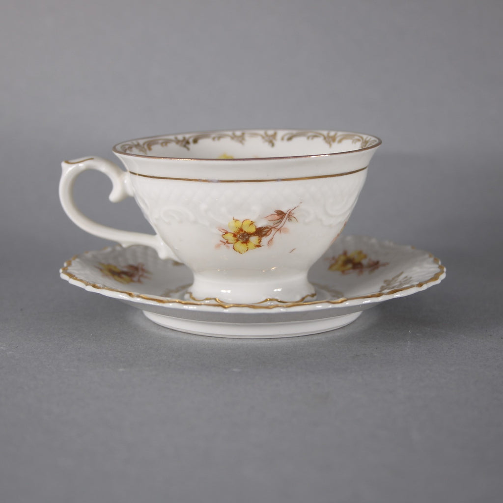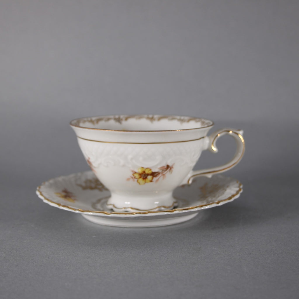 Flint Ridge Porcelain Teacup With Saucer White Yellow Multi Teacup With Saucer