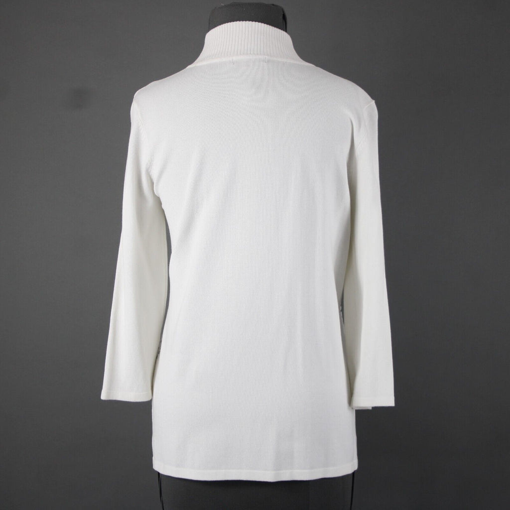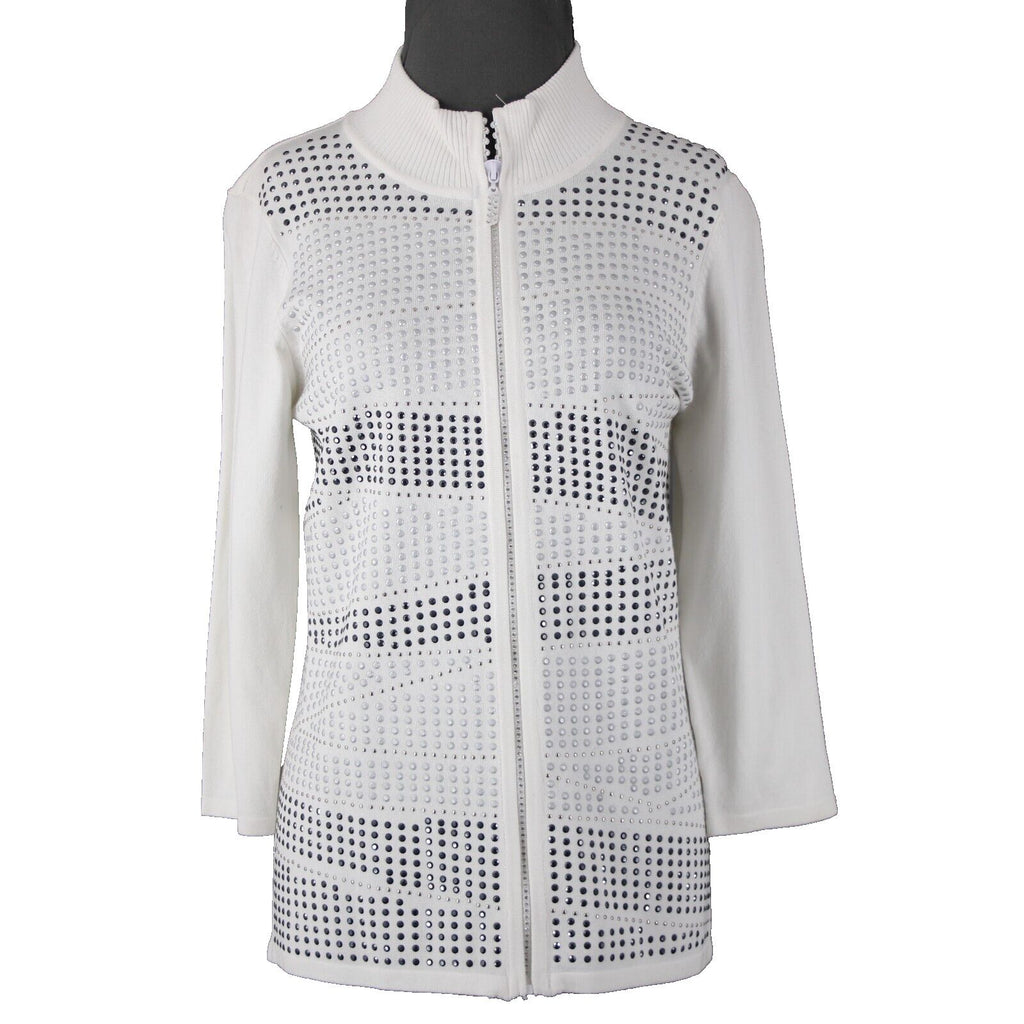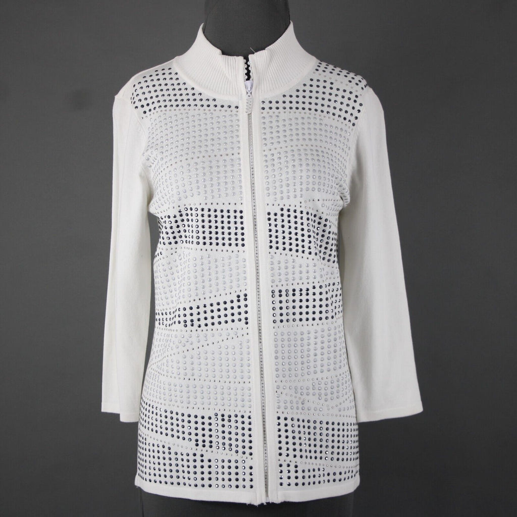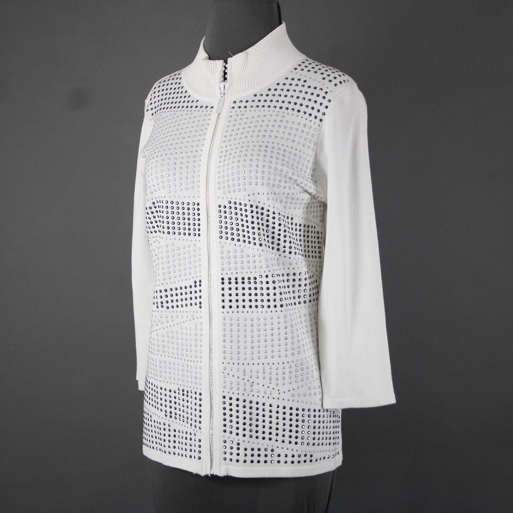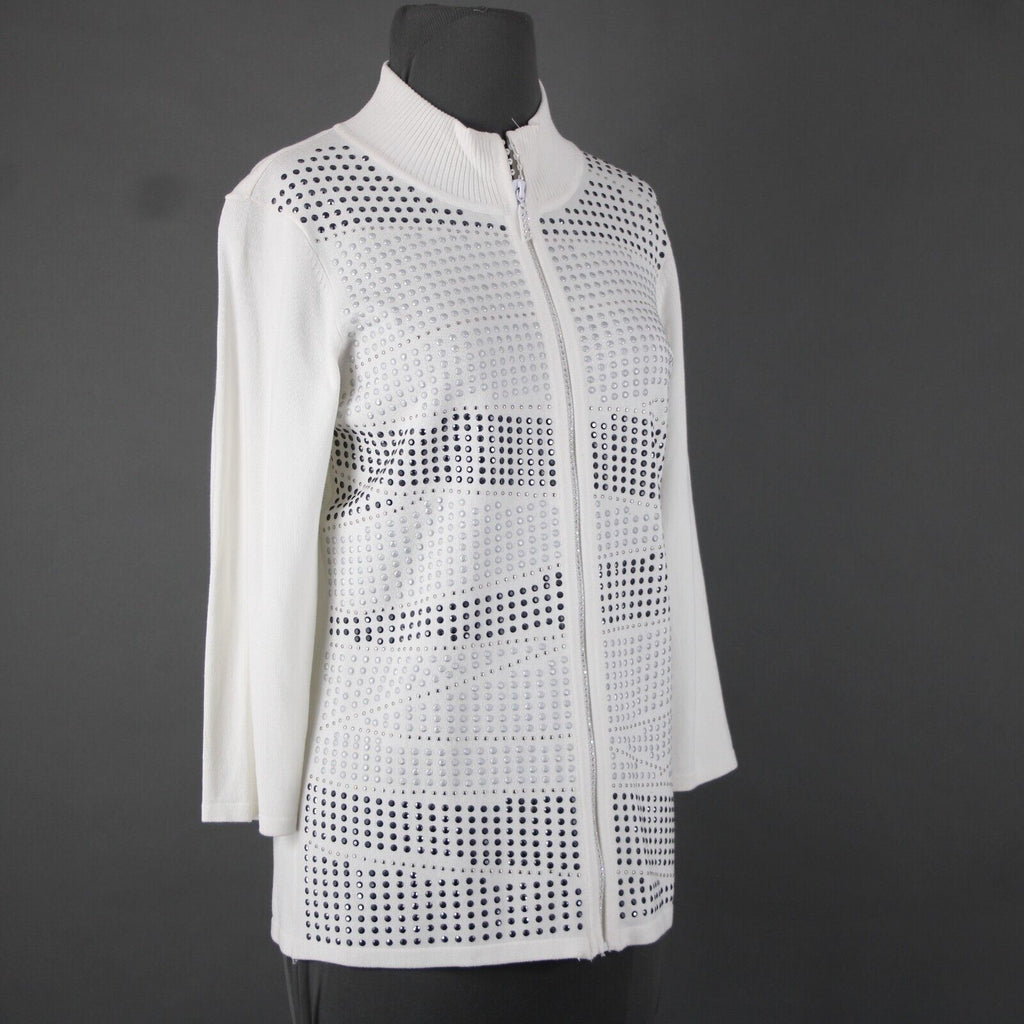 Fontana Sz L White Rhinestones Studded Collared Viscose Nylon Sweater Jacket