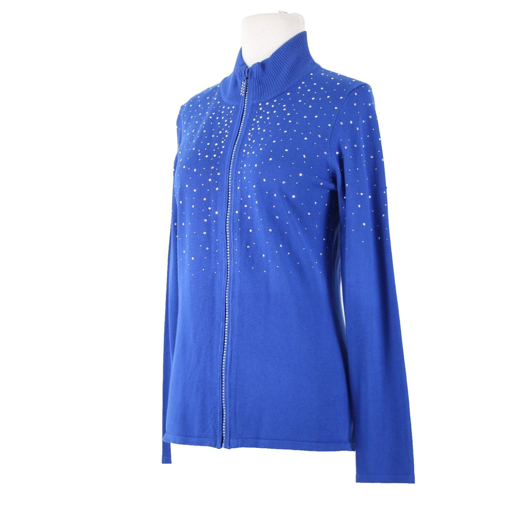 Fontana Sz M Royal Blue Silver Rhinestones Zipper Viscose Nylon AS IS Jacket