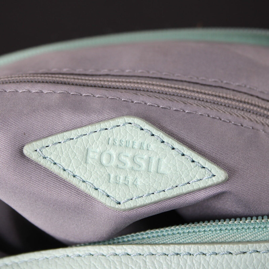 Fossil 11 x 10 x 2 Mint Green Inner Outer Pockets Adj Strap Leather Purse