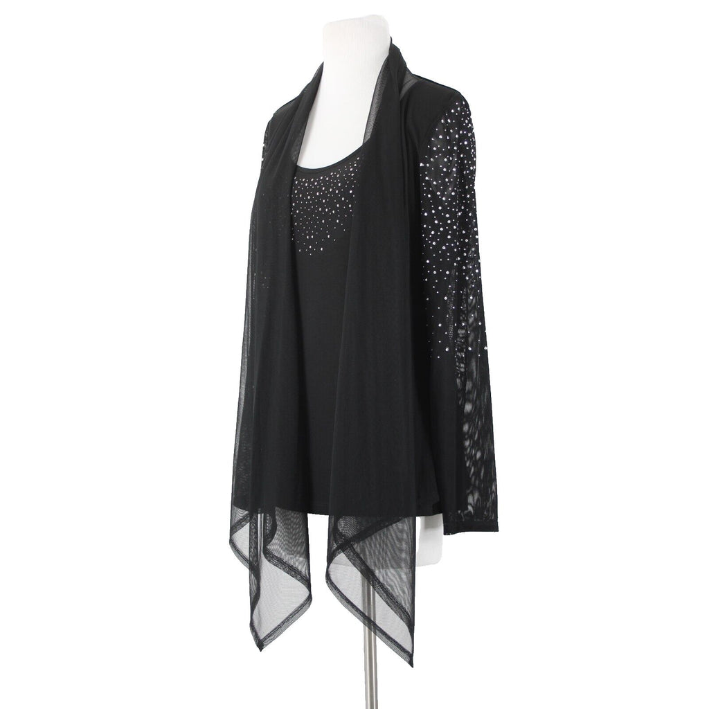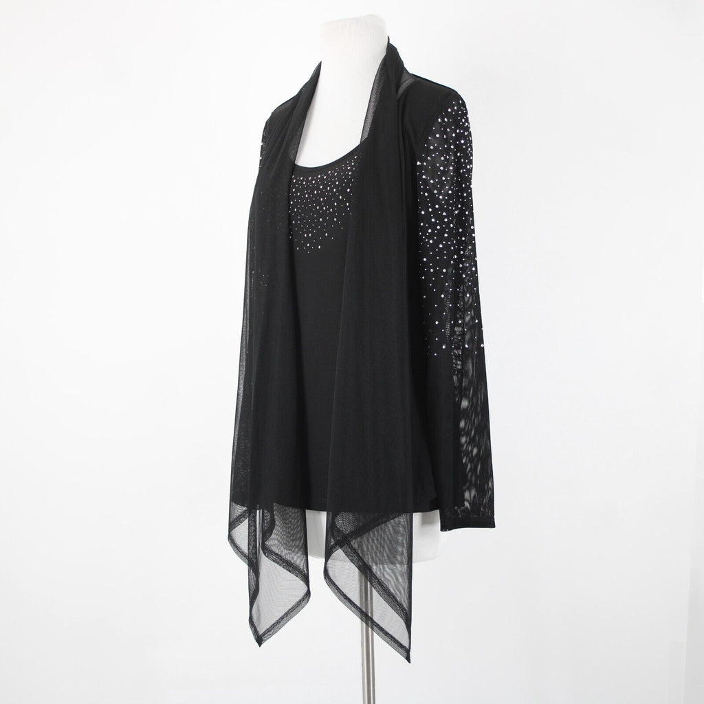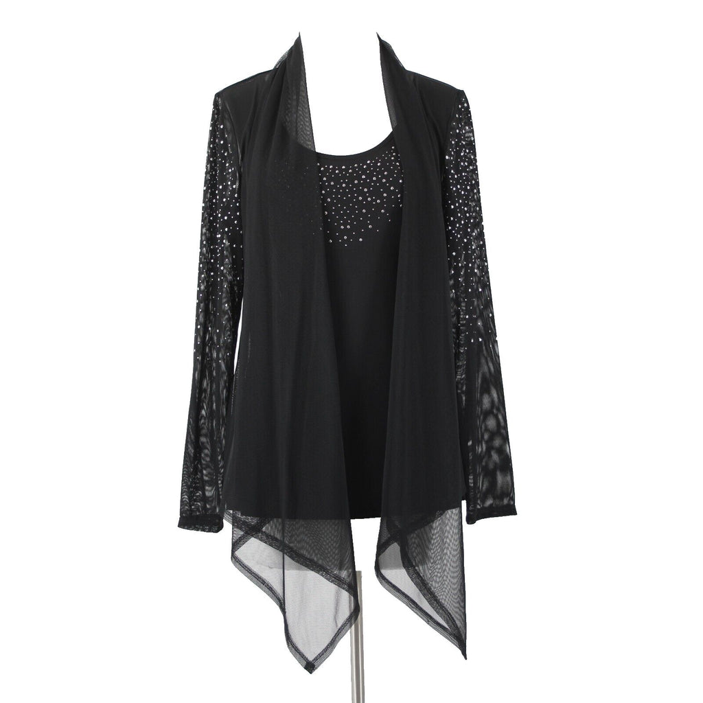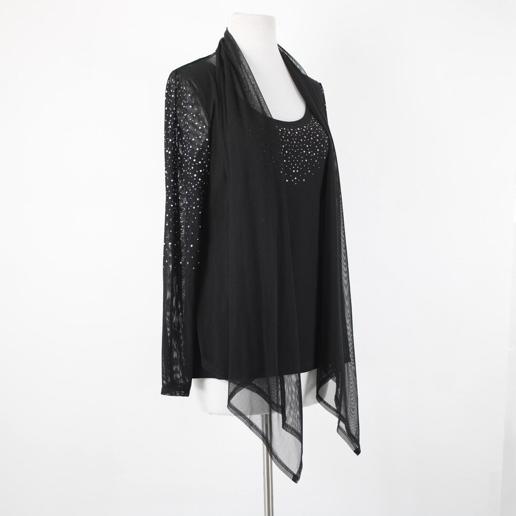 Frank Lyman NEW $312 Sz 8 Black Mesh Rhinestone 2 Pc Polyester Elastane Top