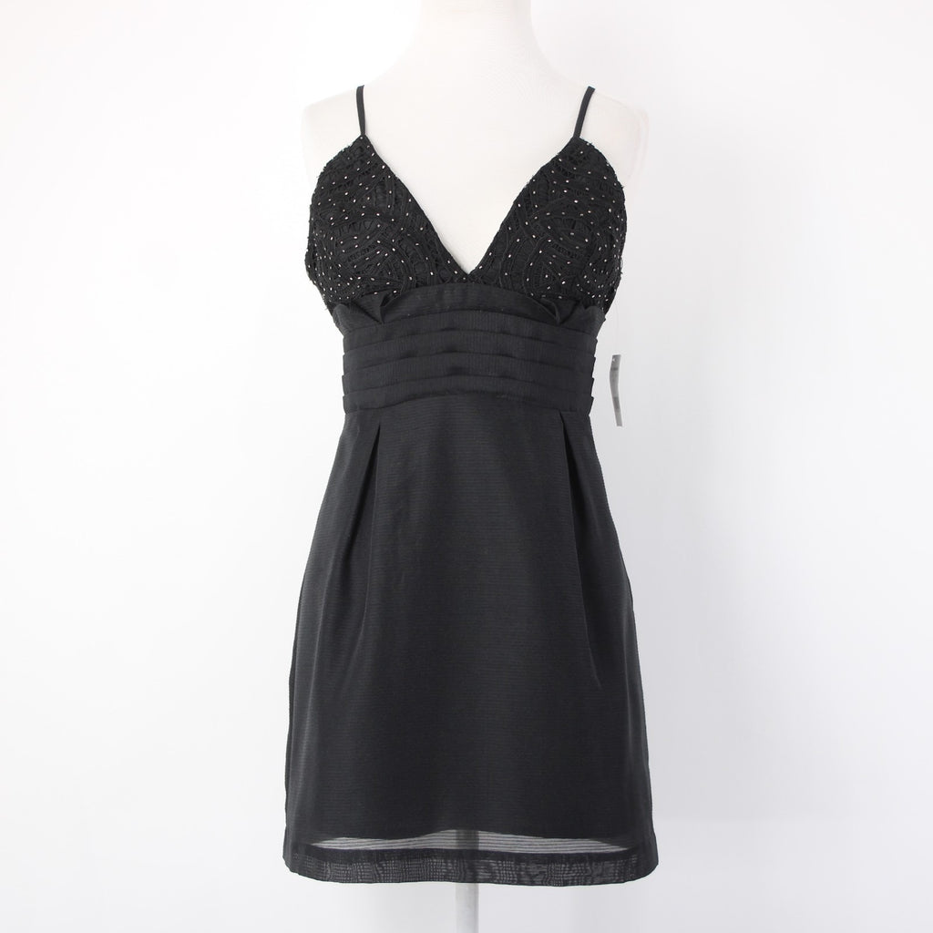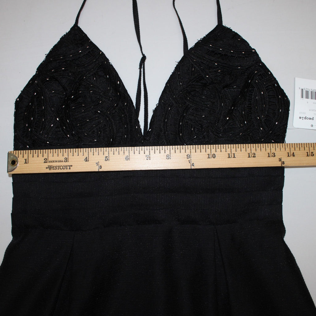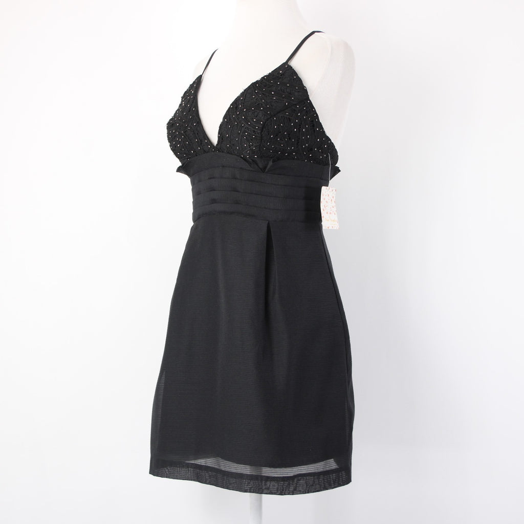 Free People Dress NEW Sz 4 Black Beaded V Neck Lined Cotton Polyester Dress