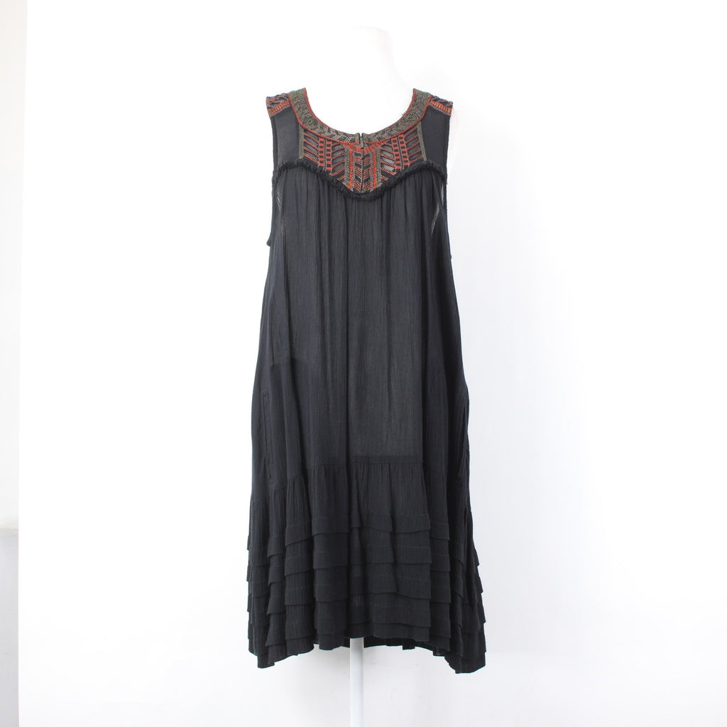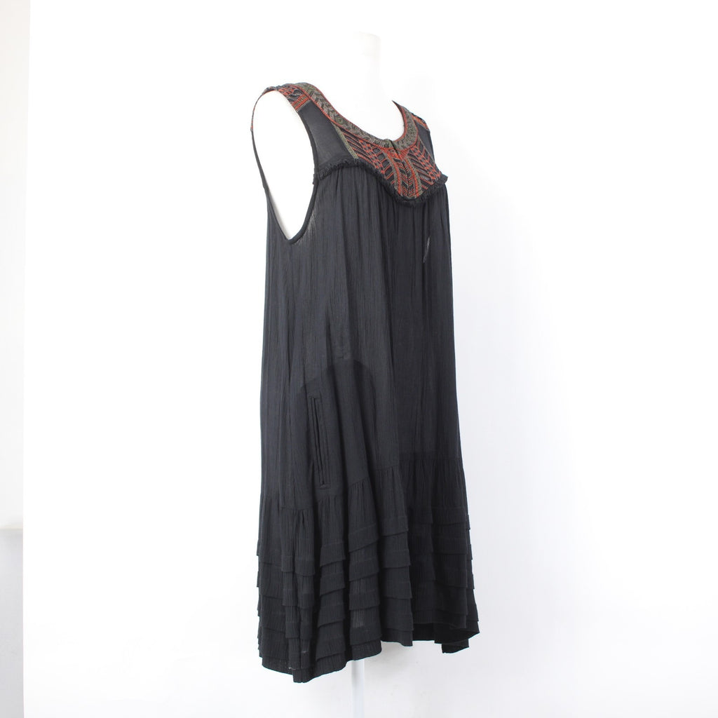 Free People Dress Sz M Black Rust Multicolor Embroidered 100% Rayon Dress