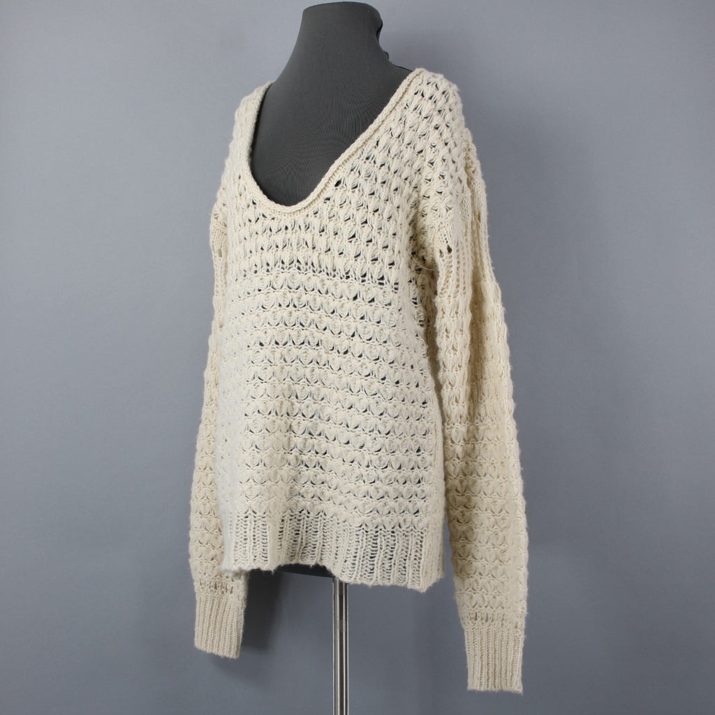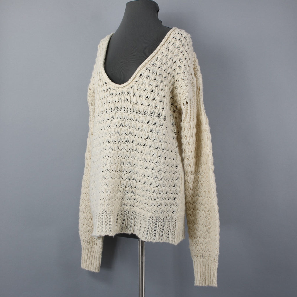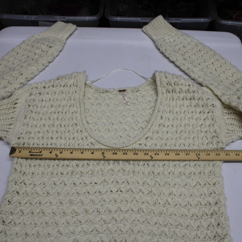 Free People Sz XS Beige Open Knit Acrylic Blend Oversize Scoop Slouch Sweater