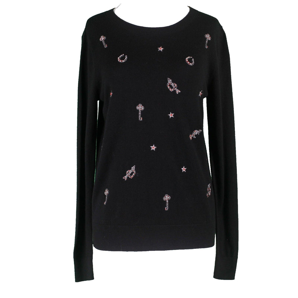 French Connection NEW $138 Sz S Black Silver Stones Beads Cotton Blend Sweater
