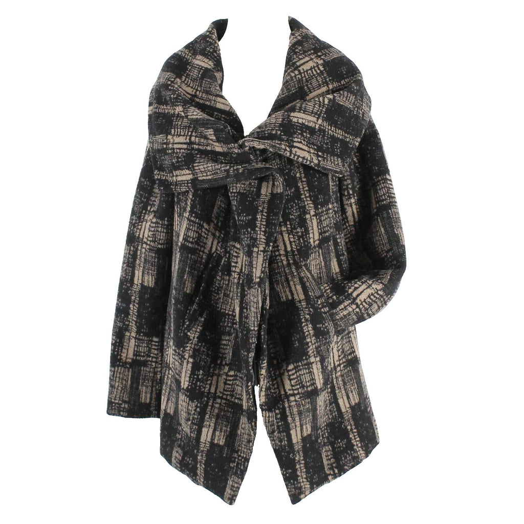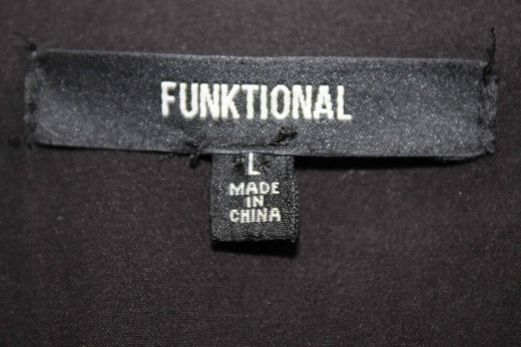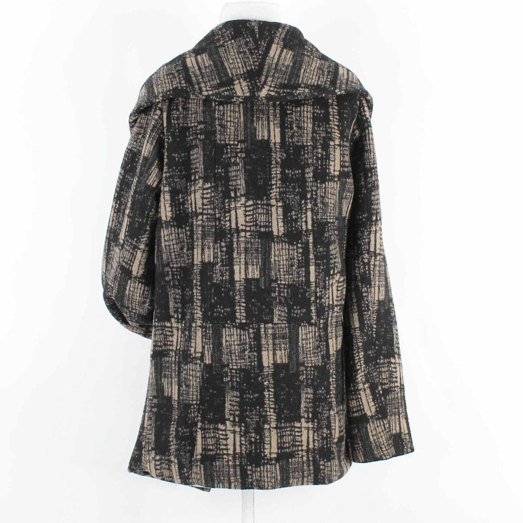 Funktional Sz L Black Tan Plaid Big Collar Lined Zip Wool Blend Poly Jacket